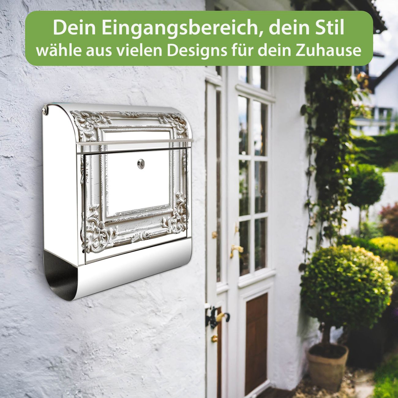 Wandbriefkasten Edelstahl Motiv Antiker Bilderrahmen