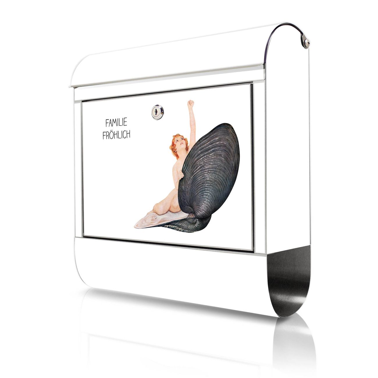 Wandbriefkasten Edelstahl Motiv Aufbruch aus der Muschel Vintage