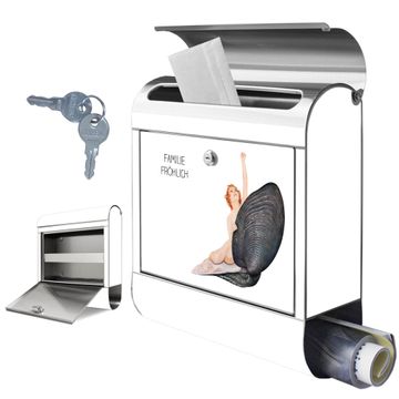 FUNKTION: Der banjado Edelstahl Briefkasten mit Motiv Motiv Aufbruch aus der Muschel Vintage bietet Ihnen mit seinem Fassungsvermögen genügend Platz auch für große A4 Sendungen. Das integrierte Zeitungsfach eignet sich hervorragend um unkompliziert die Tageszeitung zu fassen. Auf Wunsch können Sie bei uns den passenden Ständer kaufen und so aus dem Wandbriefkasten einen Standbriefkasten machen. DESIGN: Der Motivbriefkasten hat ein sehr ansprechendes und ausgefallenes Design, damit entlocken Sie Ihren Nachbarn und dem Postboten ein Lächeln. Heben Sie Sich ab von der tristen grauen Masse ohne auf Funktionalität zu verzichten. DETAILS: Der Design Briefkasten mit Motiv Motiv Aufbruch aus der Muschel Vintage besteht aus hochwertigem 18/0 Edelstahl. Das Motiv besteht aus einer wetter- und UV-resistenten Folie, die mit einem Schutzlaminat überzogen ist. Der Briefkasten wird mit Montagematerial und zwei Schlüsseln geliefert. NUTZEN: Sie können diesen Briefkasten sowohl als Wandbriefkasten montieren oder einen passenden Ständer auswählen und als Standbriefkasten einbetonieren. Die Größe bietet genügend Platz für Sendungen aller Art, das hochwertige Edelstahl ist rostfrei und die Motivfolie absolut wetterfest. SCHUTZ: Um Ihre Post optimal vor Witterungseinflüssen wie Starkregen zu schützen, empfehlen wir, den Briefkasten geschützt anzubringen. BANJADO: Ihr Briefkasten wird in Sachsen in einer kleinen Manufaktur von Hand veredelt. Die Motivfolie ist lösungsmittelfrei und schutzlaminiert, dies sorgt für einen langen Halt. Wir legen großen Wert auf die Verbindung von Funktionalität und Design. Sie erhalten Handarbeit aus Sachsen.