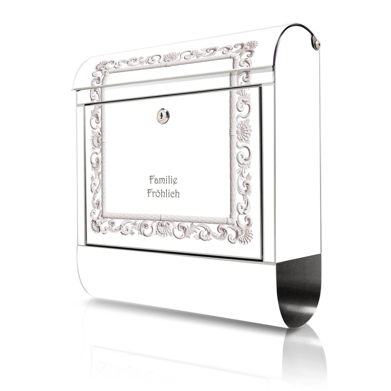 Wandbriefkasten Edelstahl Motiv Barocker Bilderrahmen