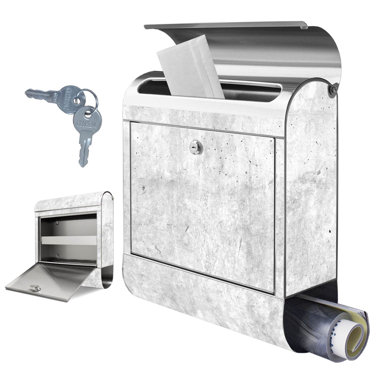 Wandbriefkasten Edelstahl Motiv Betontextur Grau