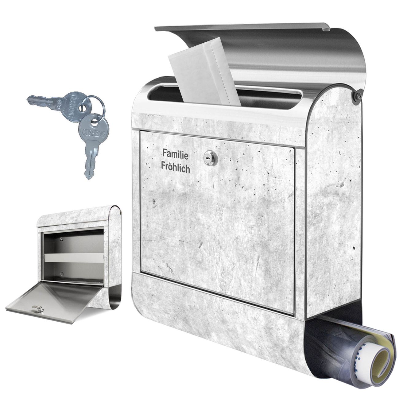 Wandbriefkasten Edelstahl Motiv Betontextur Grau