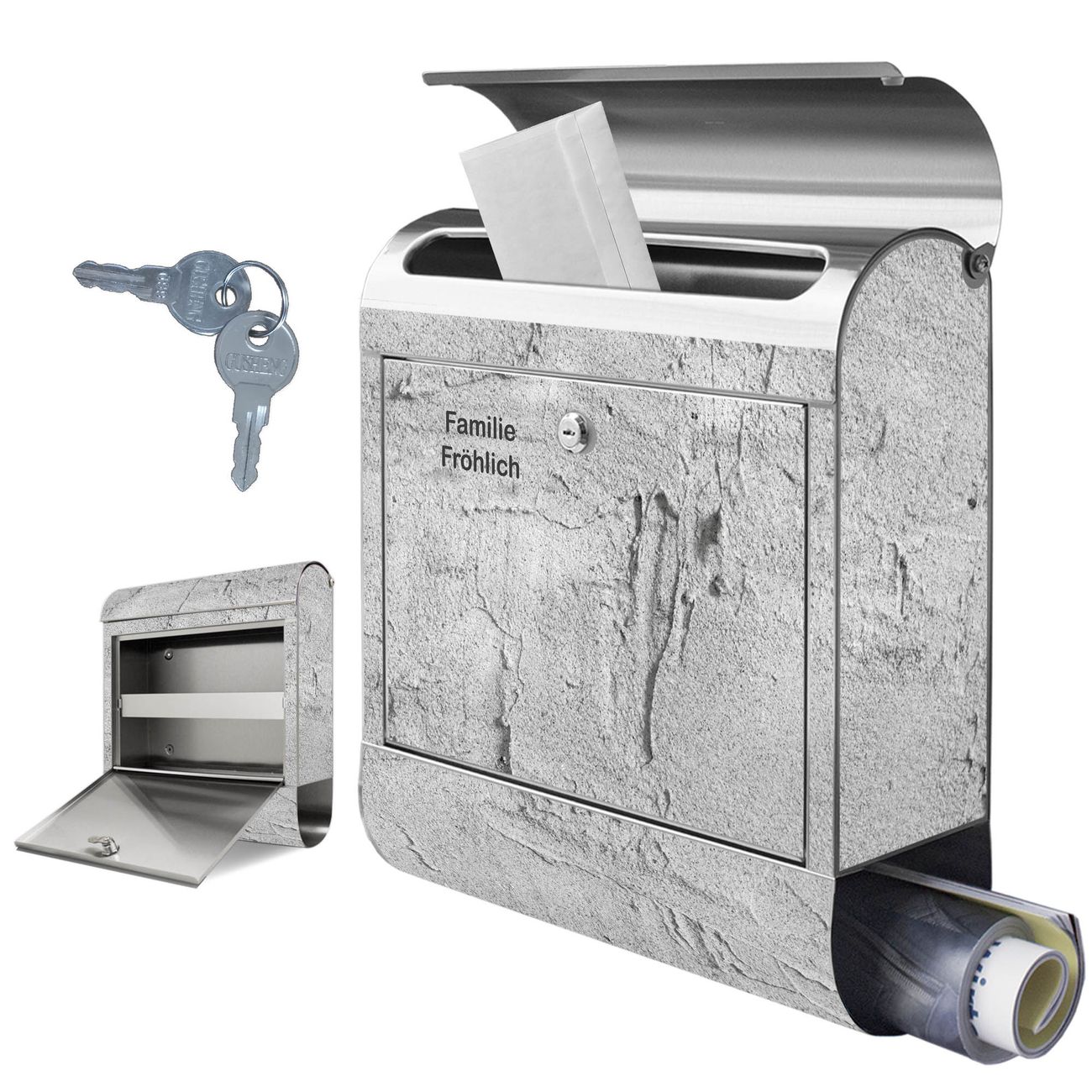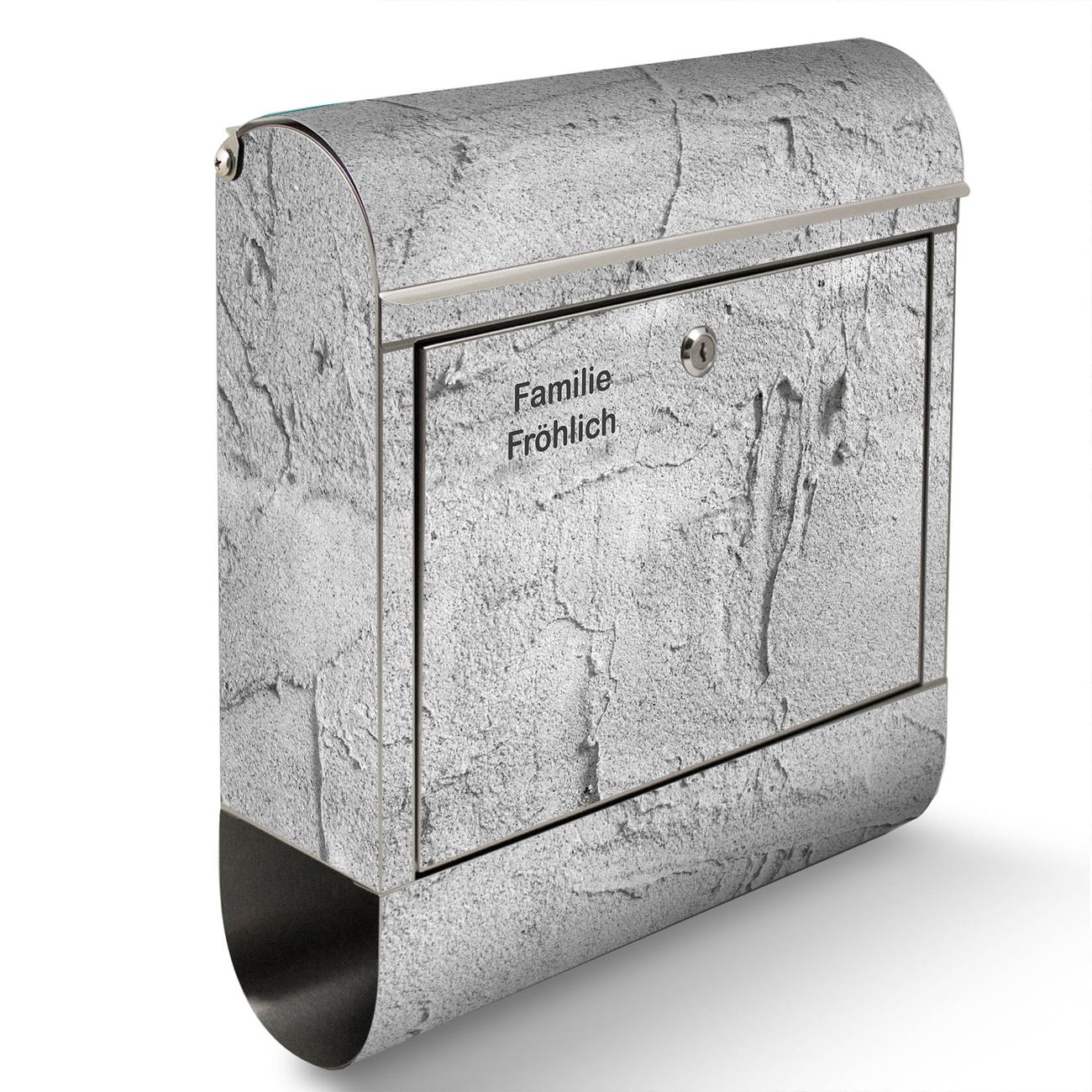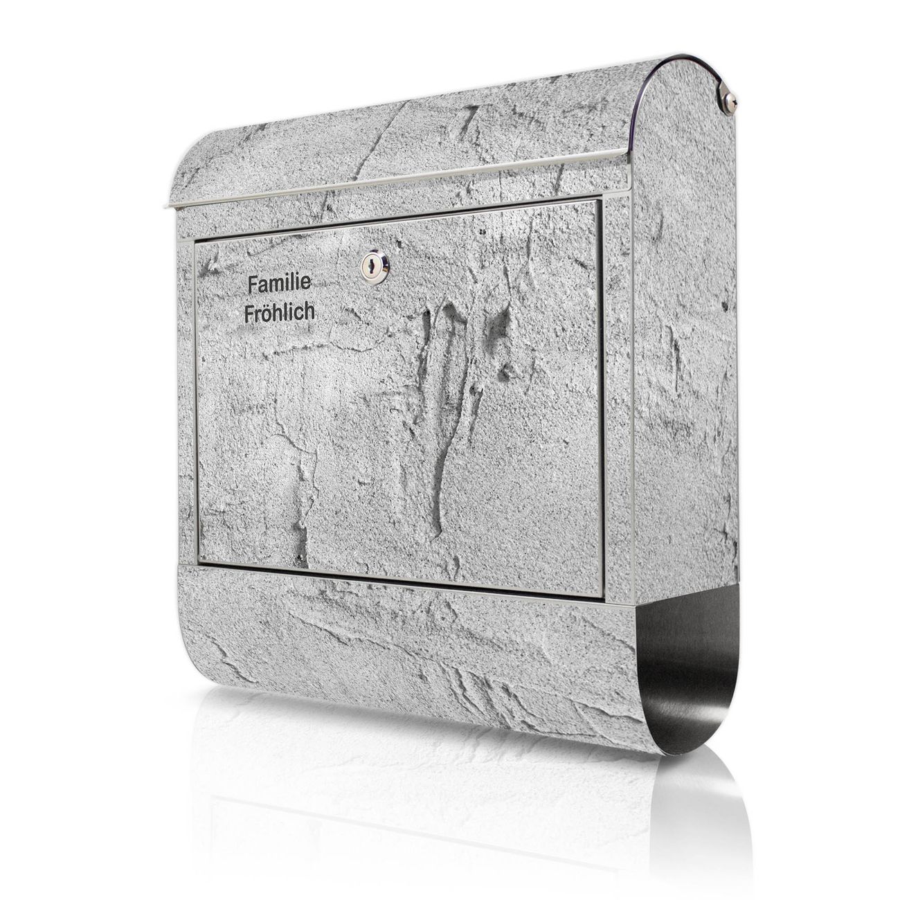 Wandbriefkasten Edelstahl Motiv Betonwand Struktur Grau