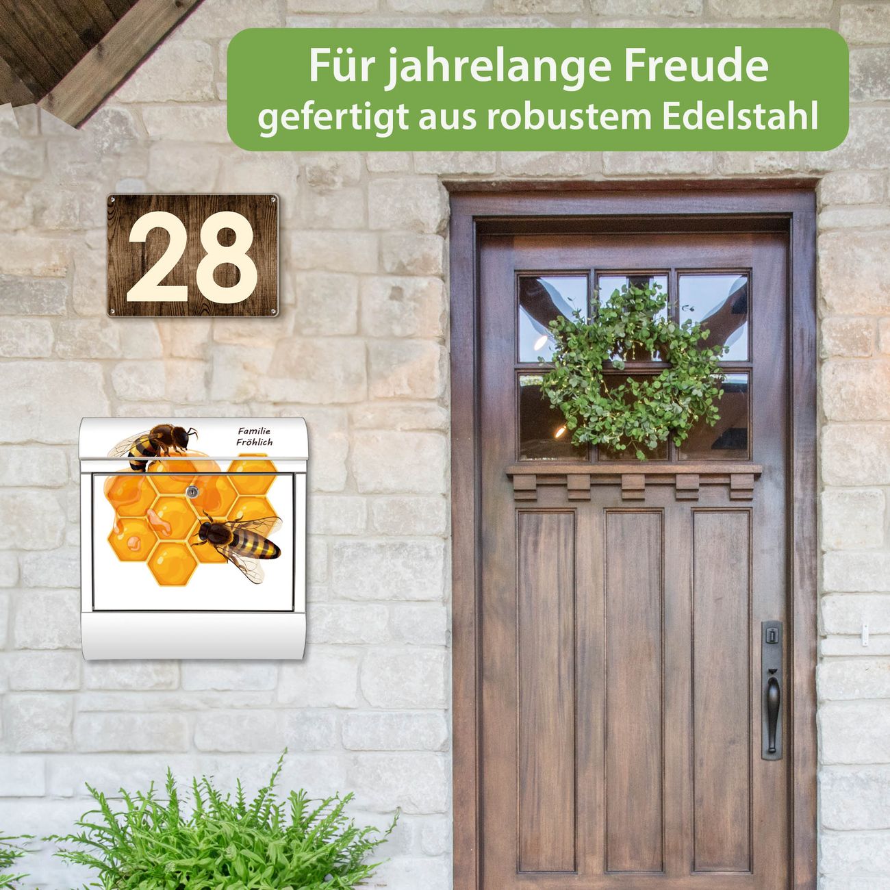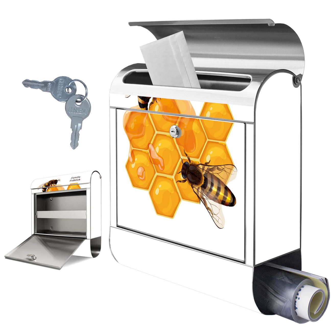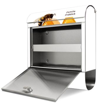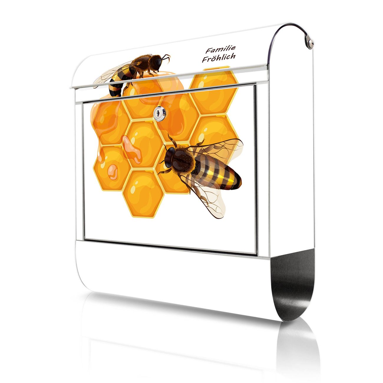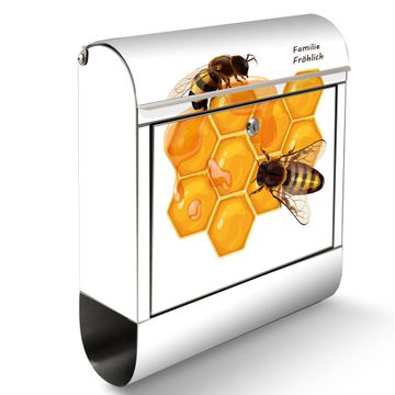 Wandbriefkasten Edelstahl Motiv Bienen auf Honigwaben