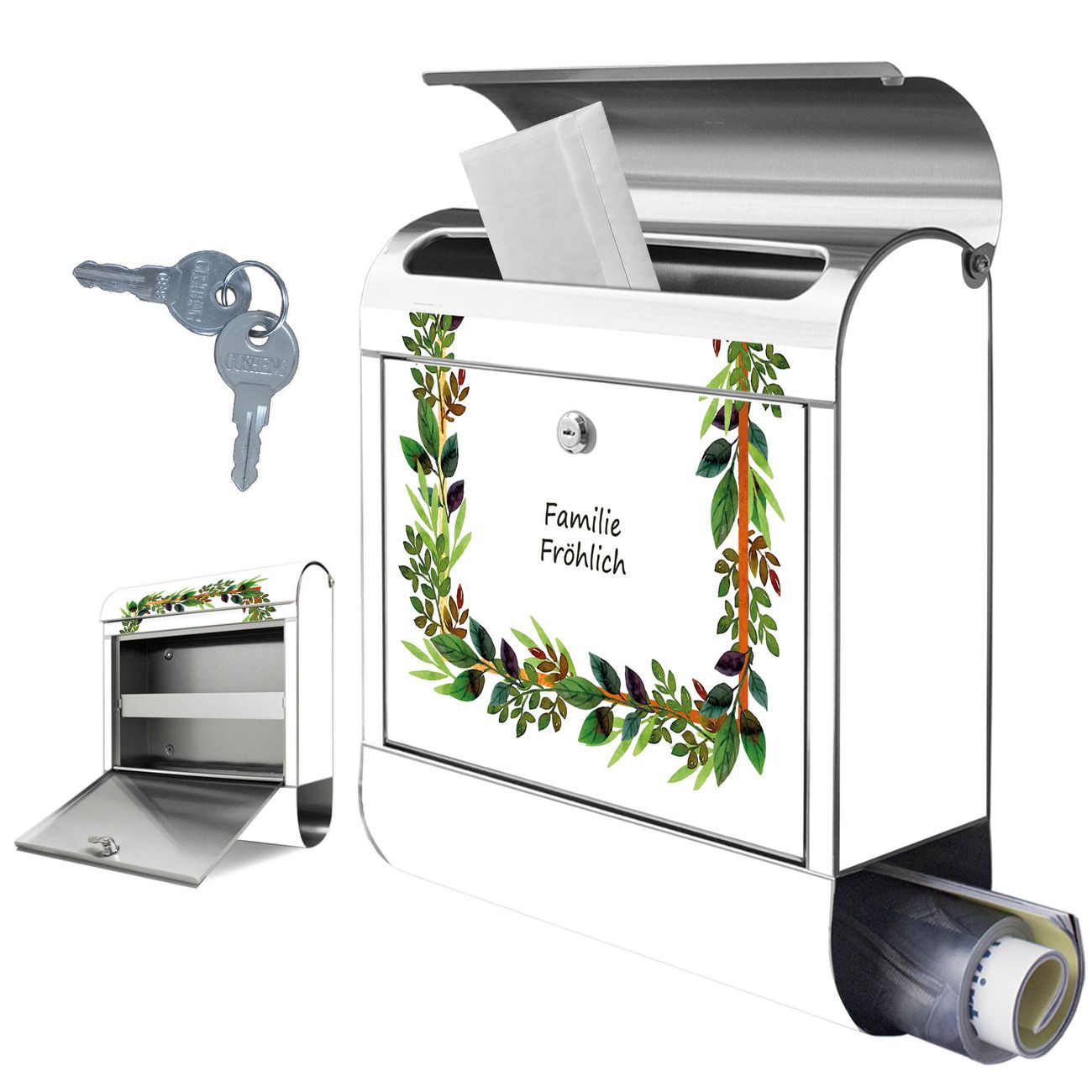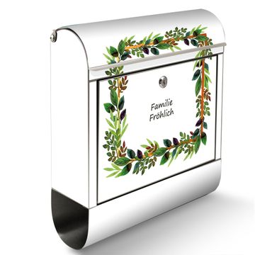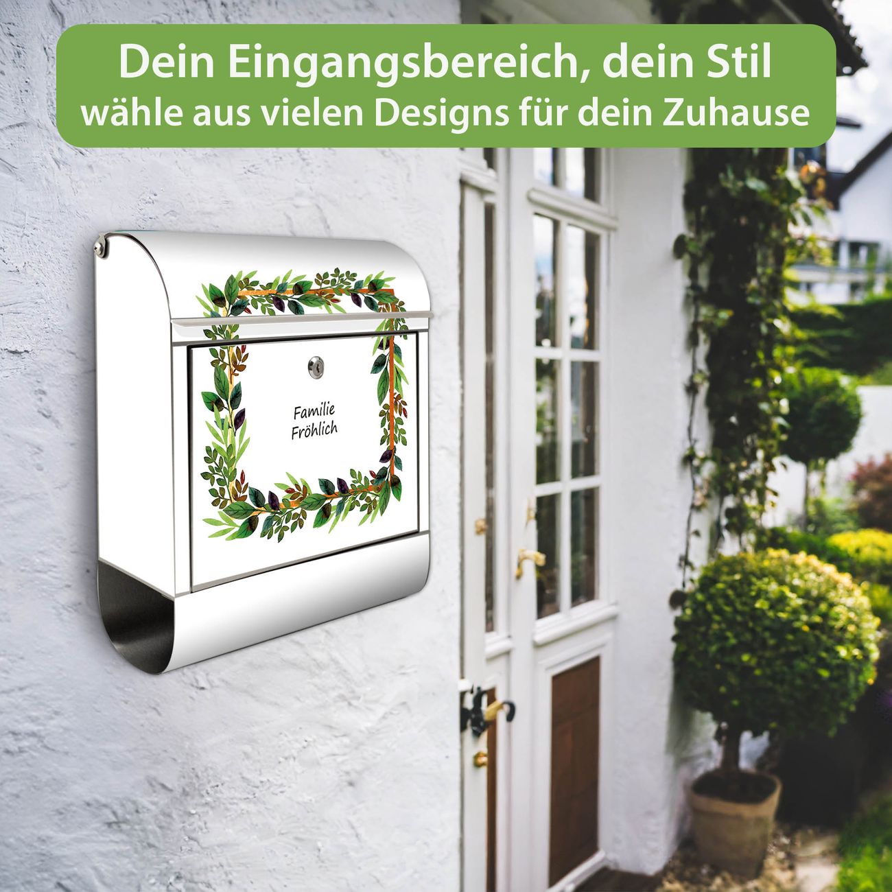 Wandbriefkasten Edelstahl Motiv Blätterrahmen 2