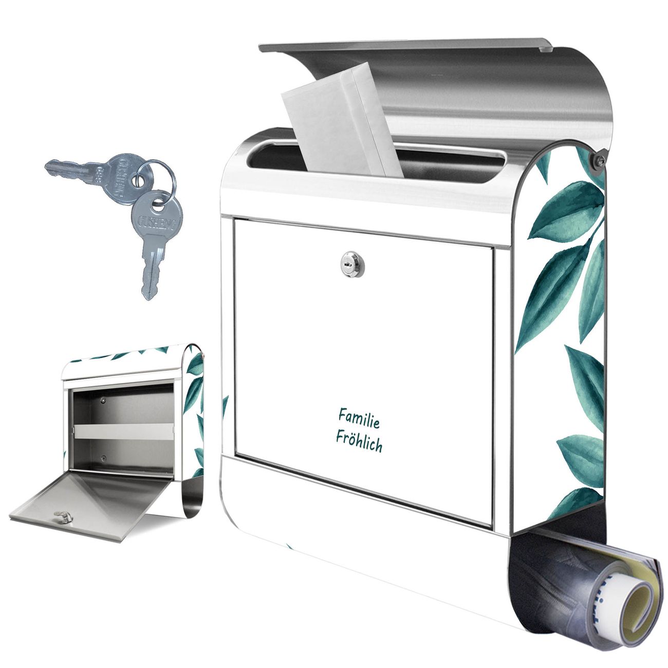 Wandbriefkasten Edelstahl Motiv Blätterrahmen