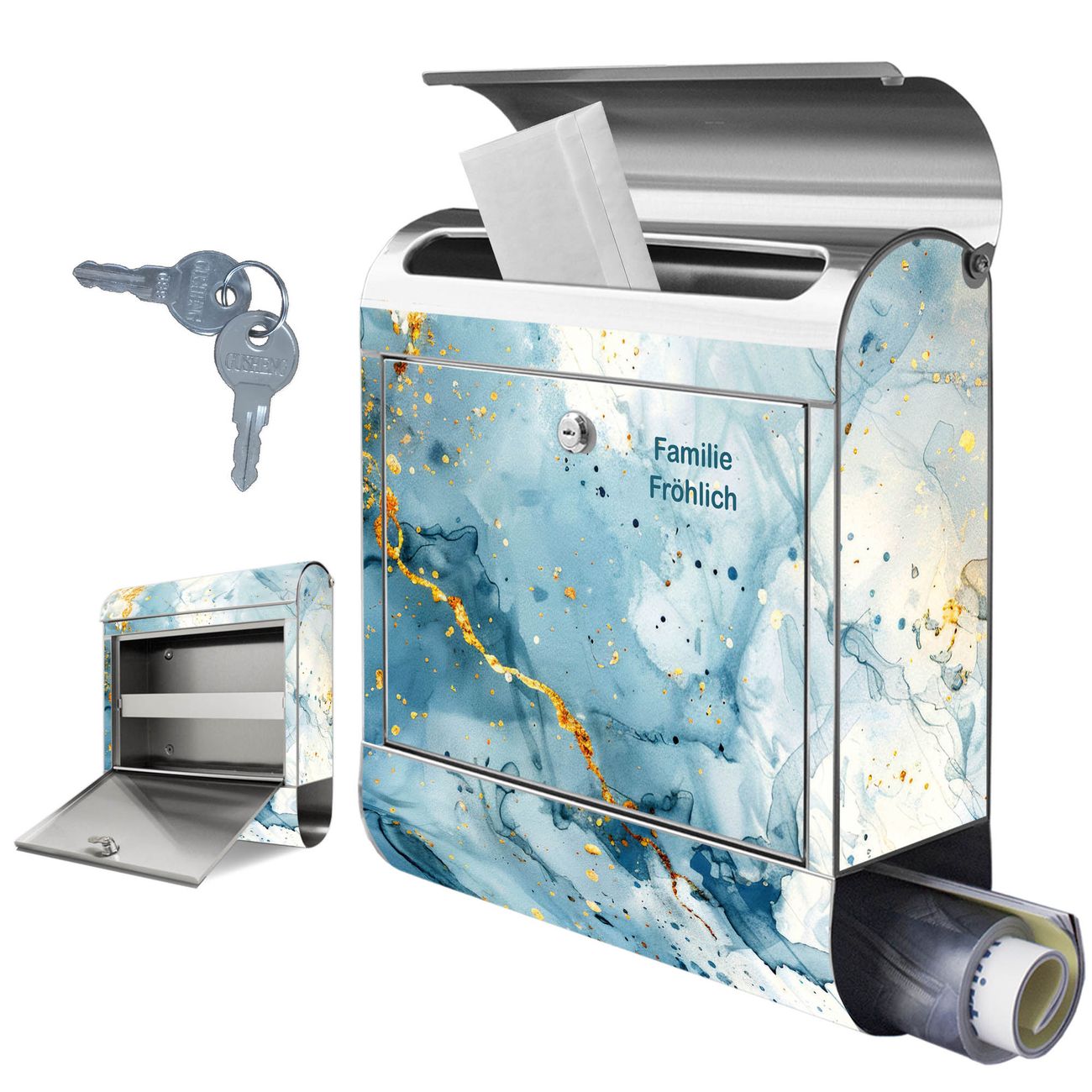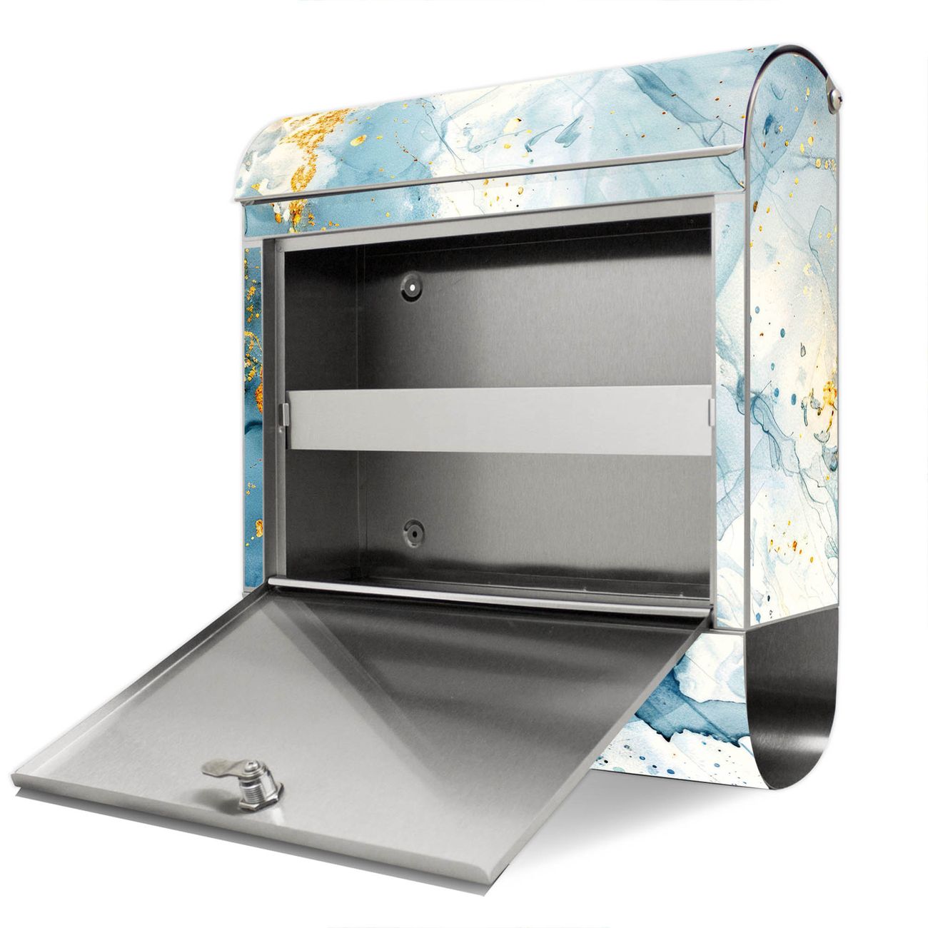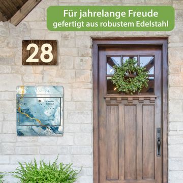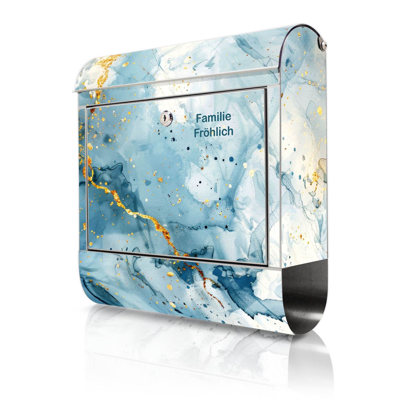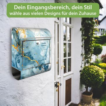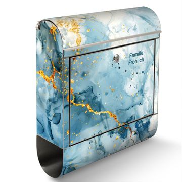 Wandbriefkasten Edelstahl Motiv Blauer Marmor mit Gold 3