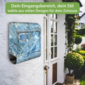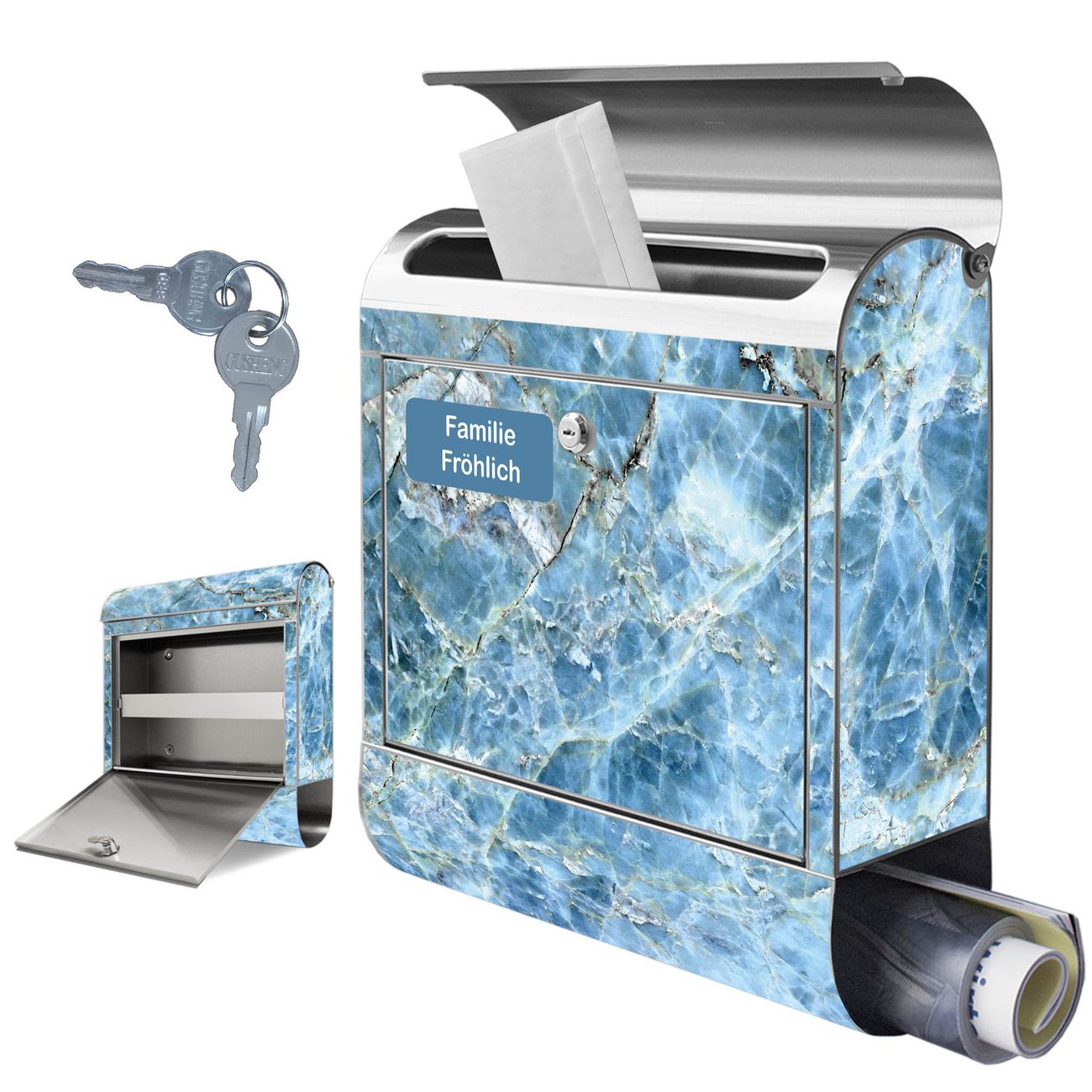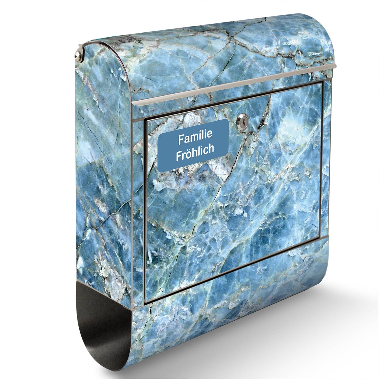 Wandbriefkasten Edelstahl Motiv Blauer Marmor