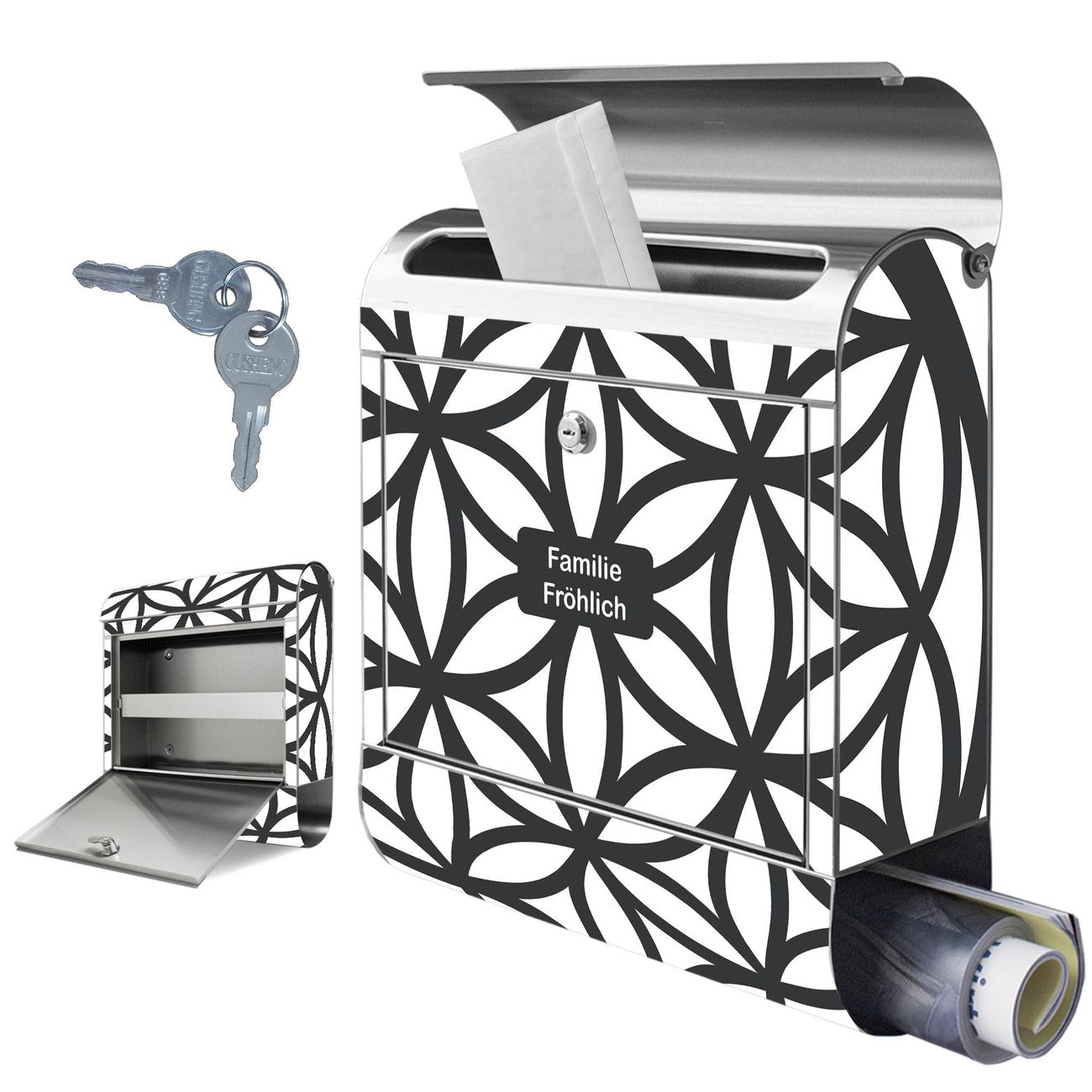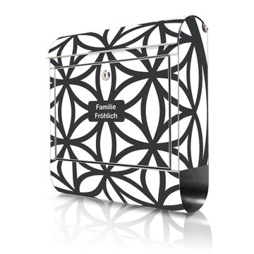 Wandbriefkasten Edelstahl Motiv Blume des Lebens Muster