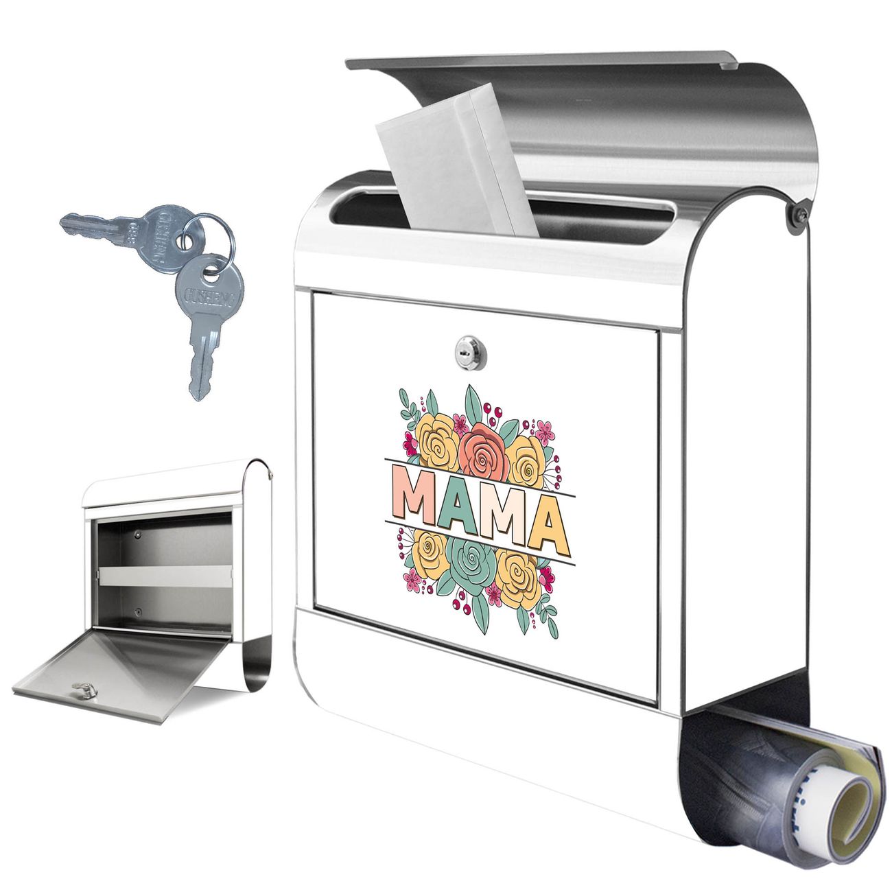 Wandbriefkasten Edelstahl Motiv Blumengruß für Mama