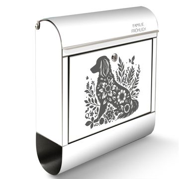 Wandbriefkasten Edelstahl Motiv Blumenhund Silhouette