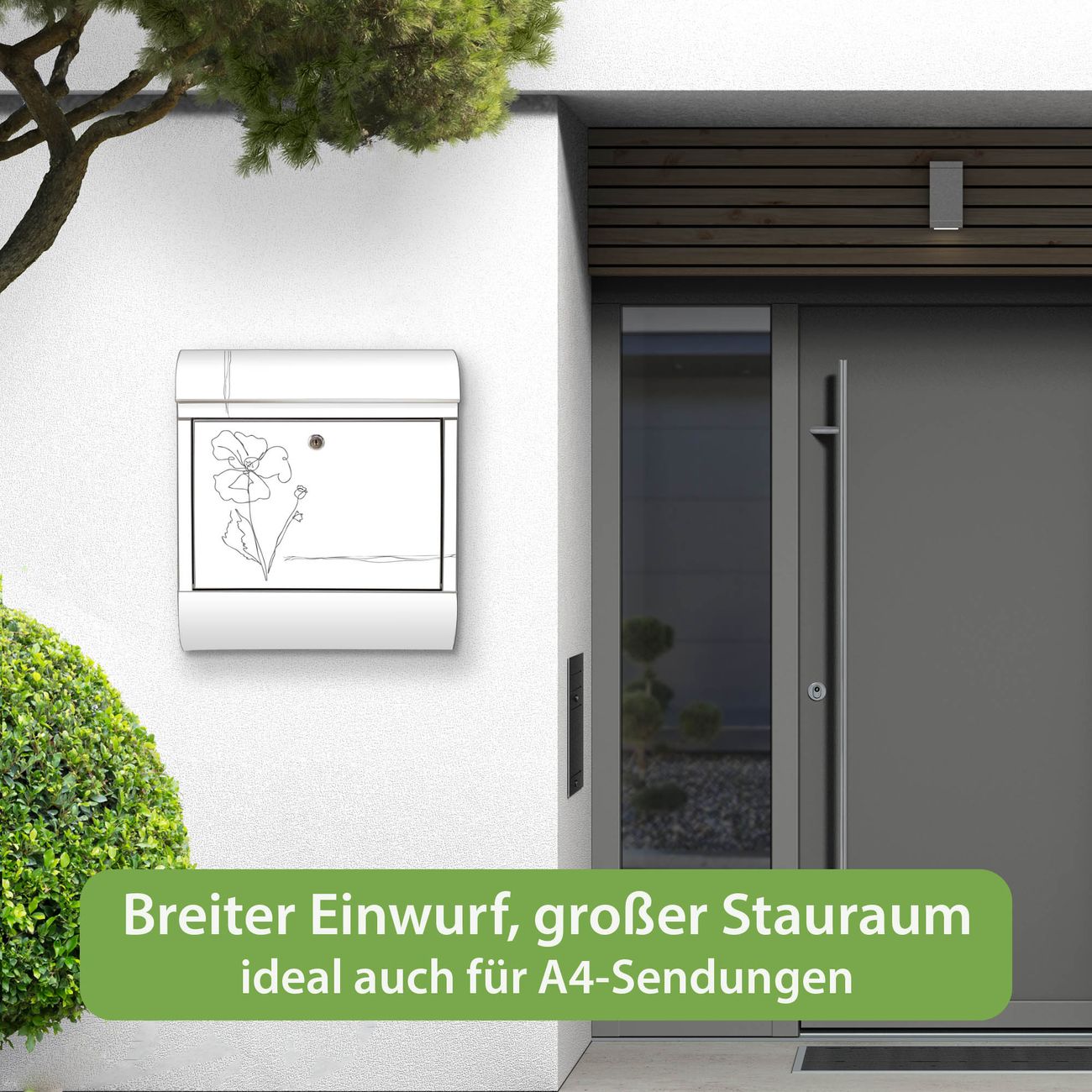 FUNKTION: Der banjado Edelstahl Briefkasten mit Motiv Motiv Blumenrahmen Skizze bietet Ihnen mit seinem Fassungsvermögen genügend Platz auch für große A4 Sendungen. Das integrierte Zeitungsfach eignet sich hervorragend um unkompliziert die Tageszeitung zu fassen. Auf Wunsch können Sie bei uns den passenden Ständer kaufen und so aus dem Wandbriefkasten einen Standbriefkasten machen. DESIGN: Der Motivbriefkasten hat ein sehr ansprechendes und ausgefallenes Design, damit entlocken Sie Ihren Nachbarn und dem Postboten ein Lächeln. Heben Sie Sich ab von der tristen grauen Masse ohne auf Funktionalität zu verzichten. DETAILS: Der Design Briefkasten mit Motiv Motiv Blumenrahmen Skizze besteht aus hochwertigem 18/0 Edelstahl. Das Motiv besteht aus einer wetter- und UV-resistenten Folie, die mit einem Schutzlaminat überzogen ist. Der Briefkasten wird mit Montagematerial und zwei Schlüsseln geliefert. NUTZEN: Sie können diesen Briefkasten sowohl als Wandbriefkasten montieren oder einen passenden Ständer auswählen und als Standbriefkasten einbetonieren. Die Größe bietet genügend Platz für Sendungen aller Art, das hochwertige Edelstahl ist rostfrei und die Motivfolie absolut wetterfest. SCHUTZ: Um Ihre Post optimal vor Witterungseinflüssen wie Starkregen zu schützen, empfehlen wir, den Briefkasten geschützt anzubringen. BANJADO: Ihr Briefkasten wird in Sachsen in einer kleinen Manufaktur von Hand veredelt. Die Motivfolie ist lösungsmittelfrei und schutzlaminiert, dies sorgt für einen langen Halt. Wir legen großen Wert auf die Verbindung von Funktionalität und Design. Sie erhalten Handarbeit aus Sachsen.