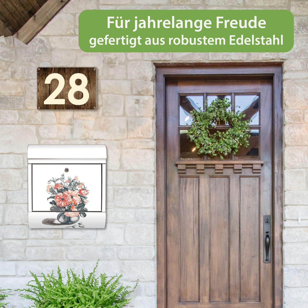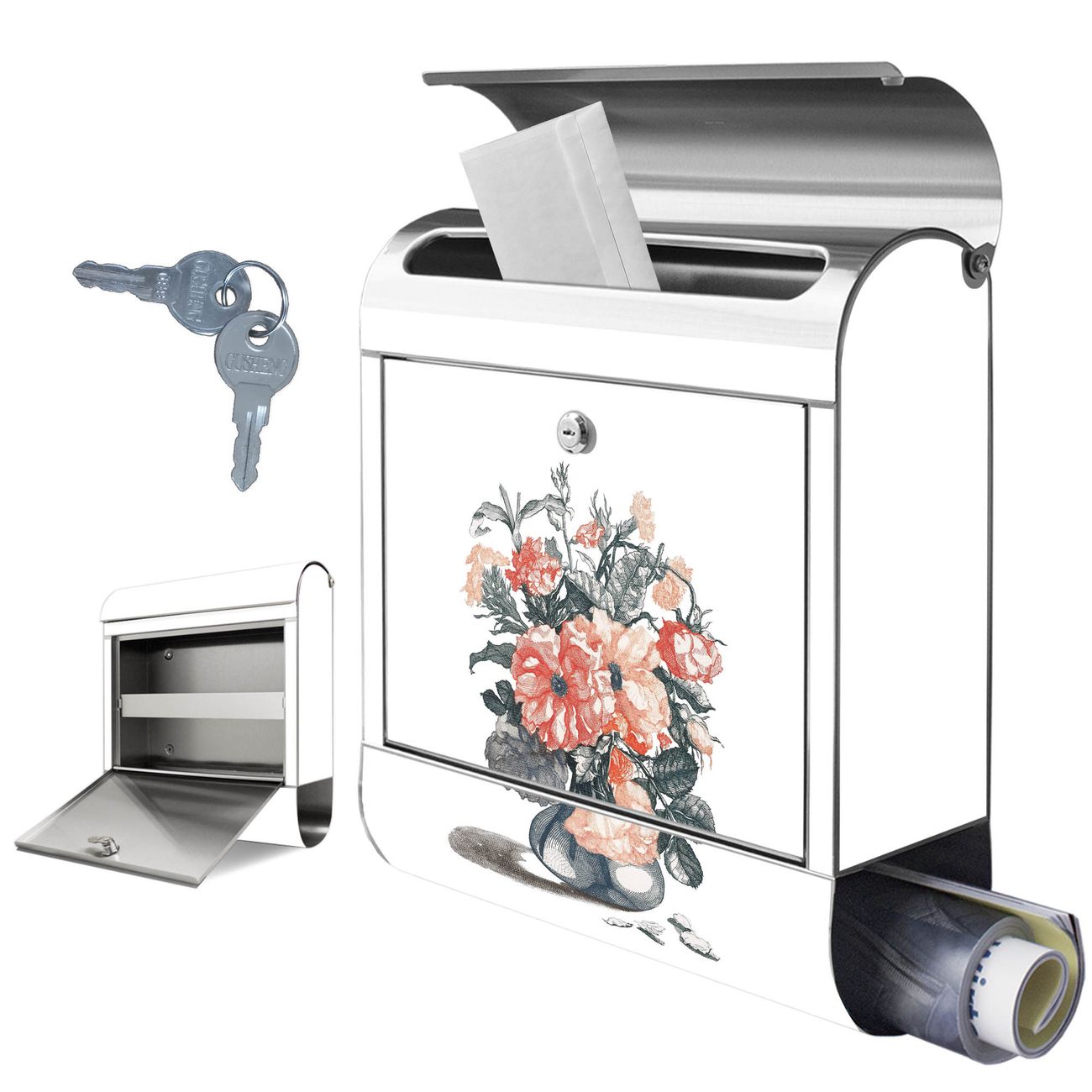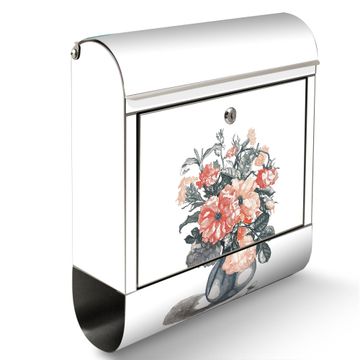Wandbriefkasten Edelstahl Motiv Blumenstrauß Vintage
