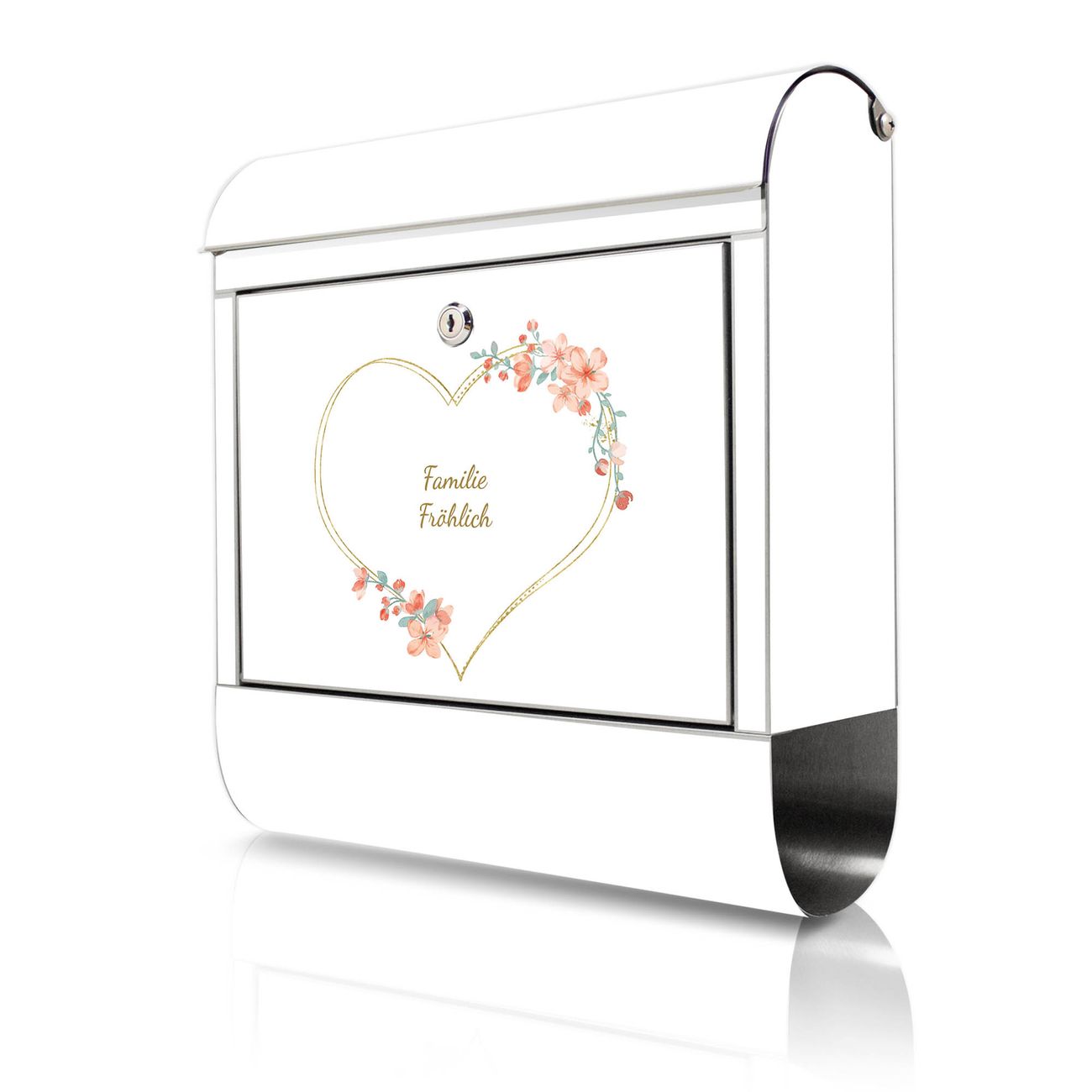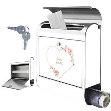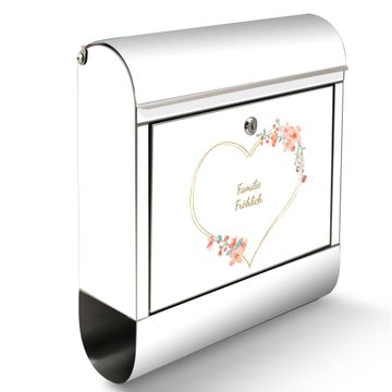 Wandbriefkasten Edelstahl Motiv Blumiges Herz