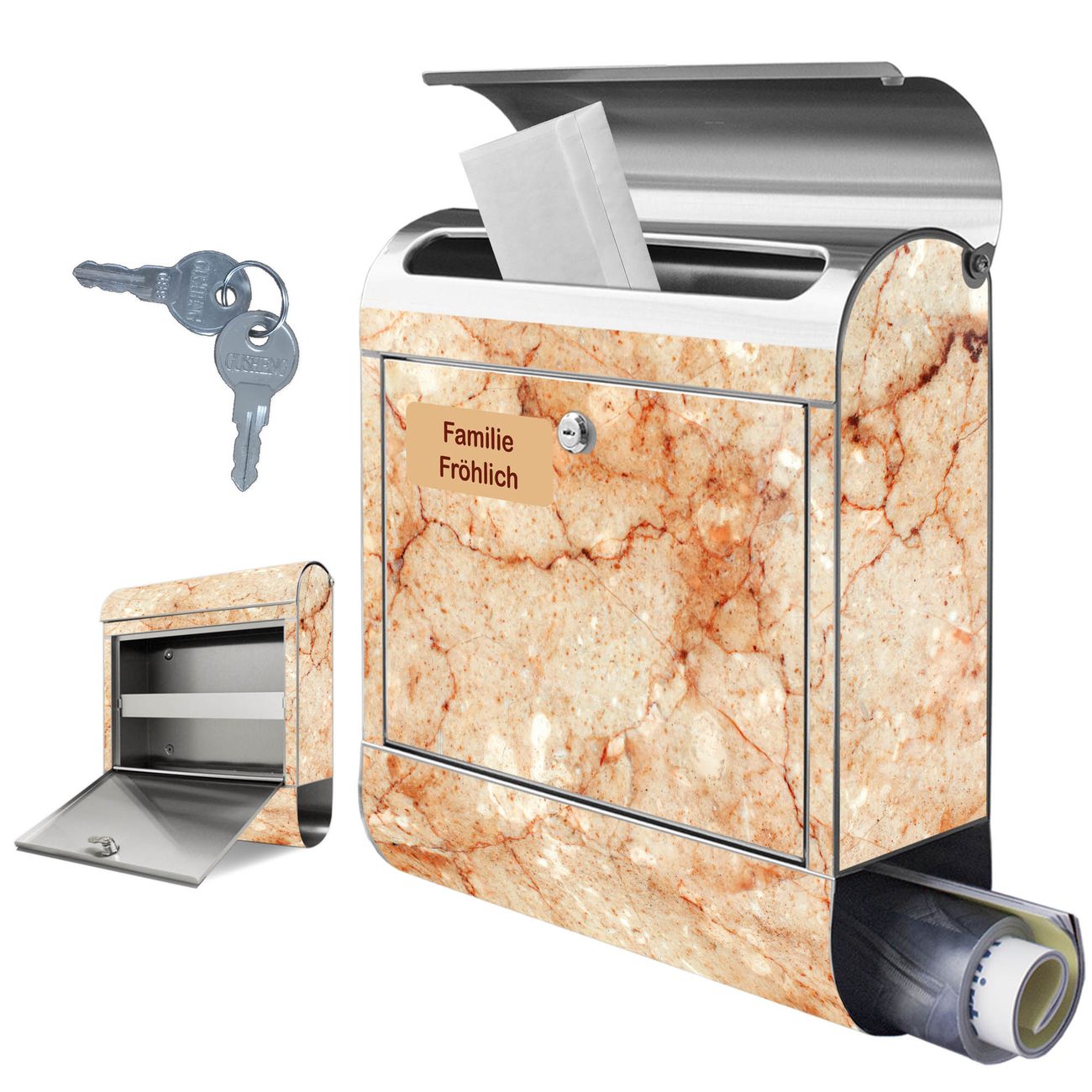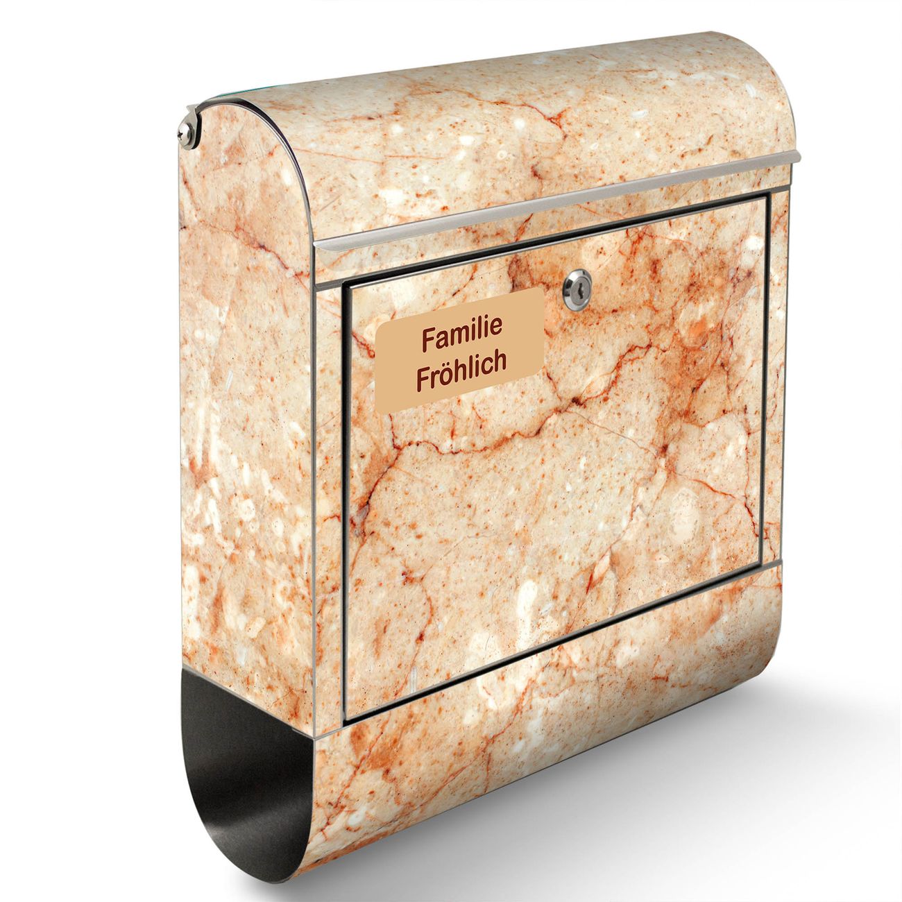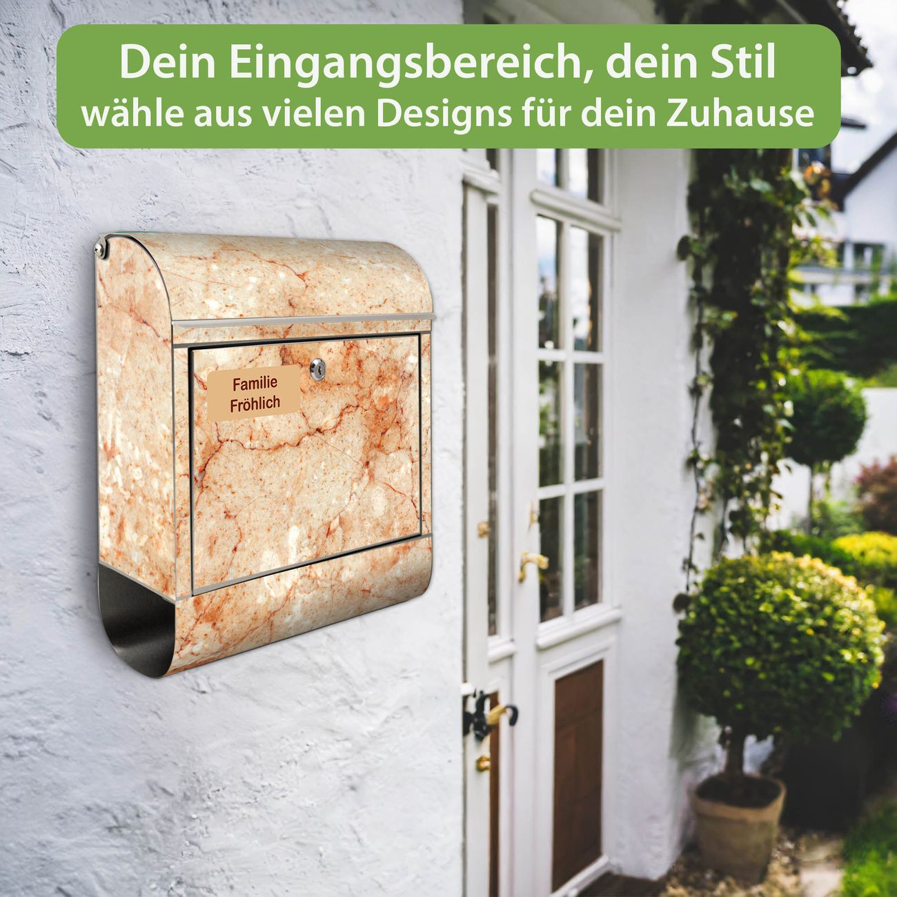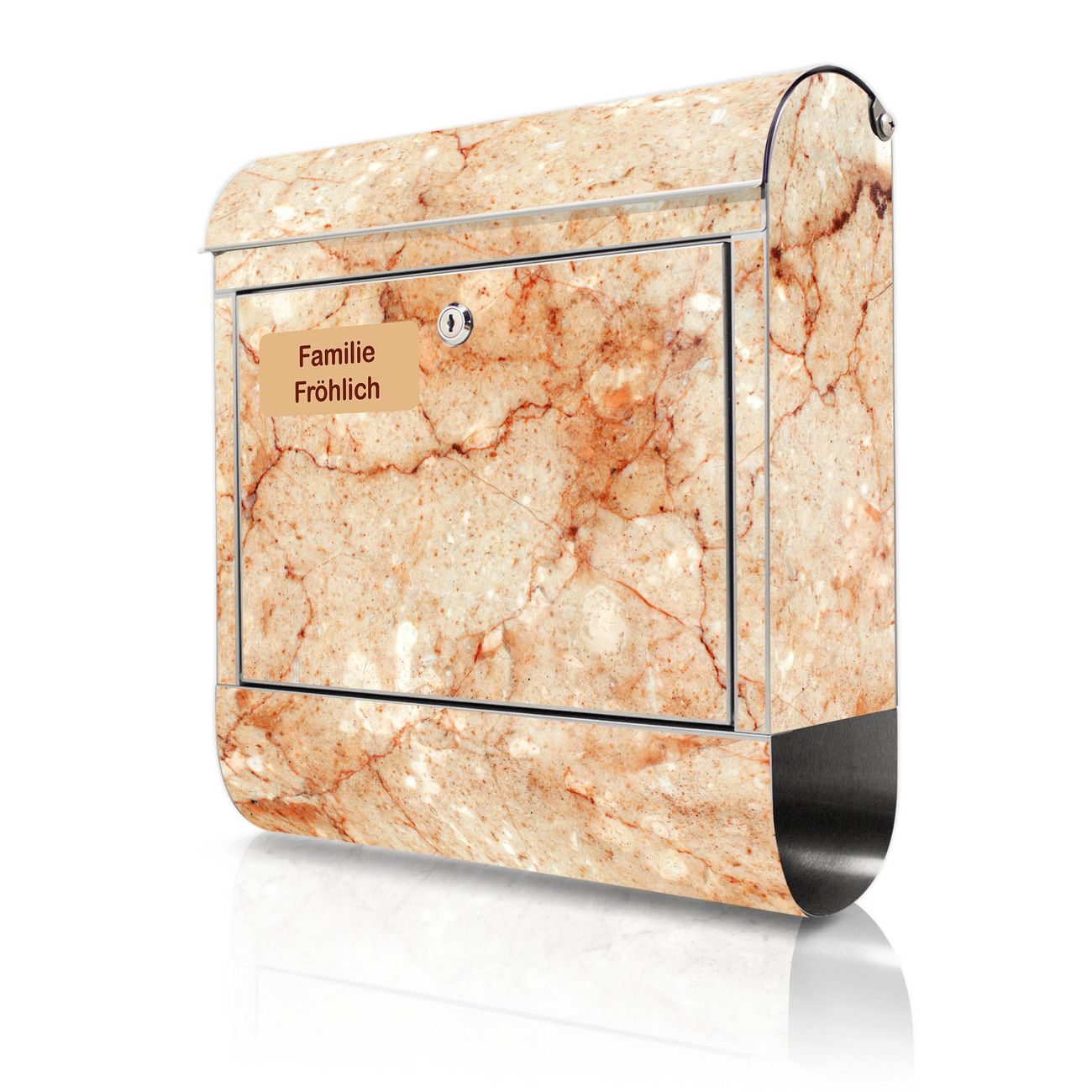 Wandbriefkasten Edelstahl Motiv Brauner Marmor Struktur