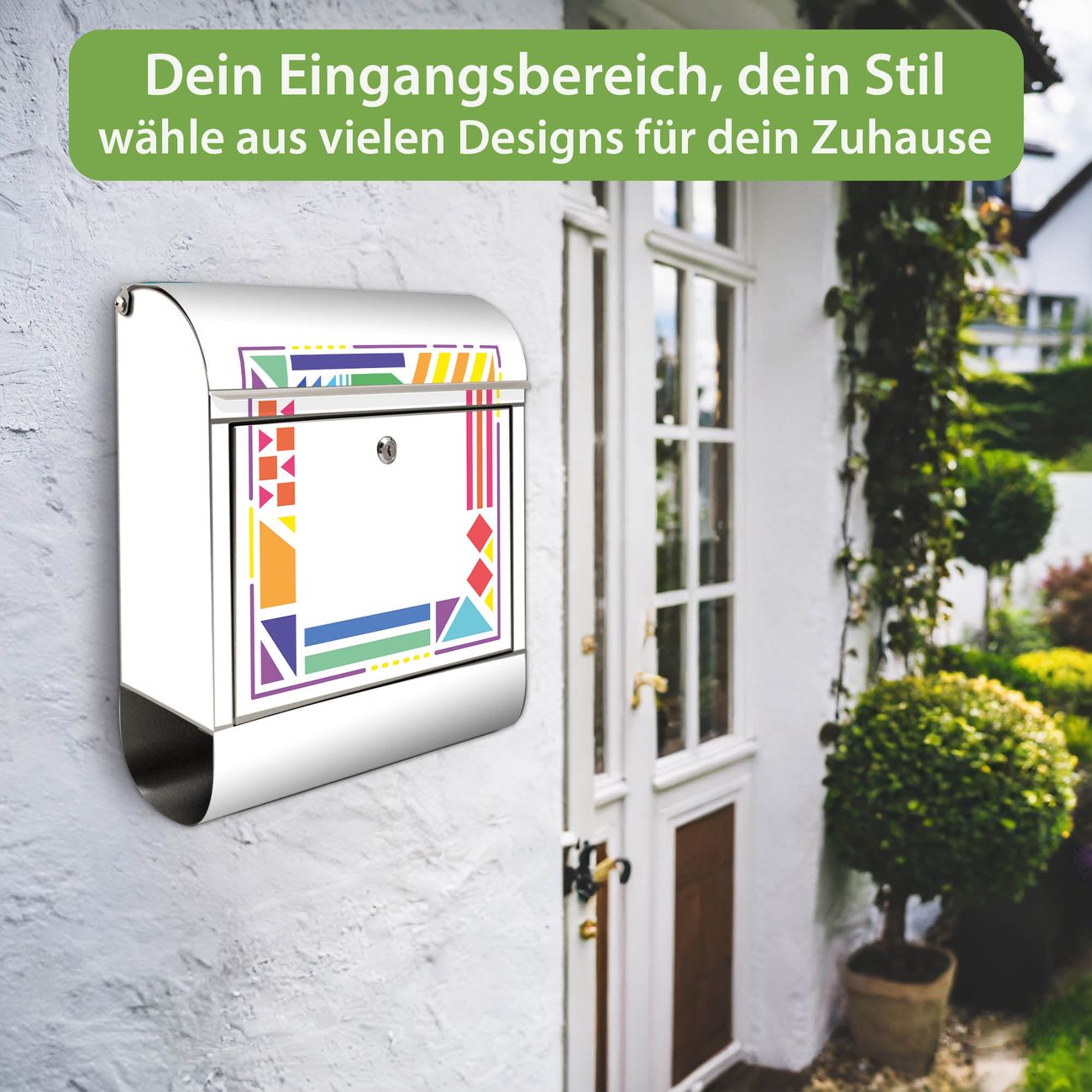 Wandbriefkasten Edelstahl Motiv Bunter Geometrischer Rahmen 2