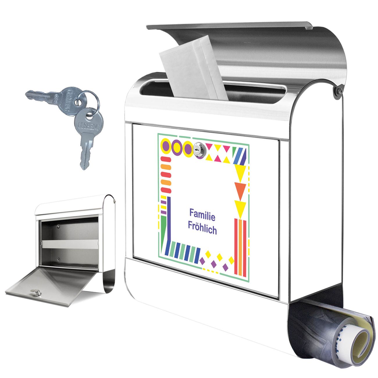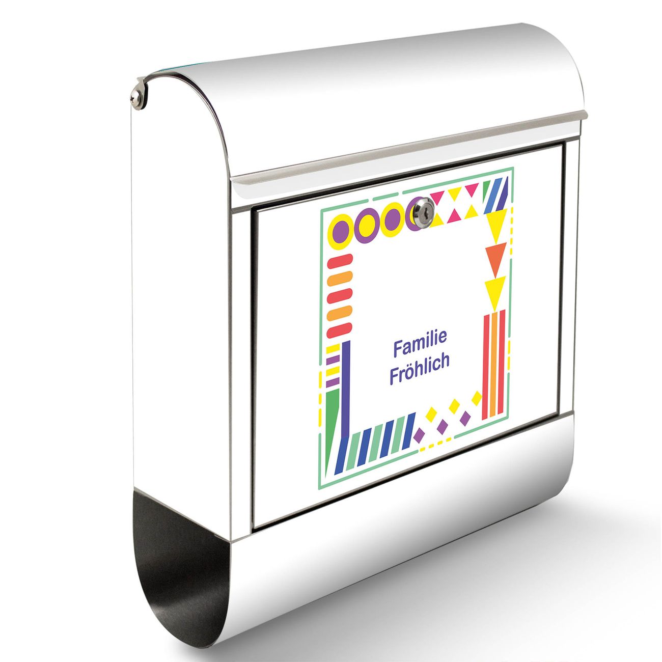 Wandbriefkasten Edelstahl Motiv Bunter Rahmen