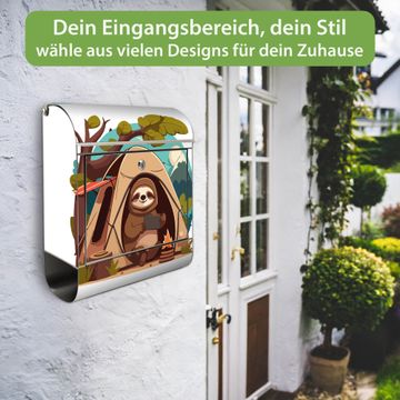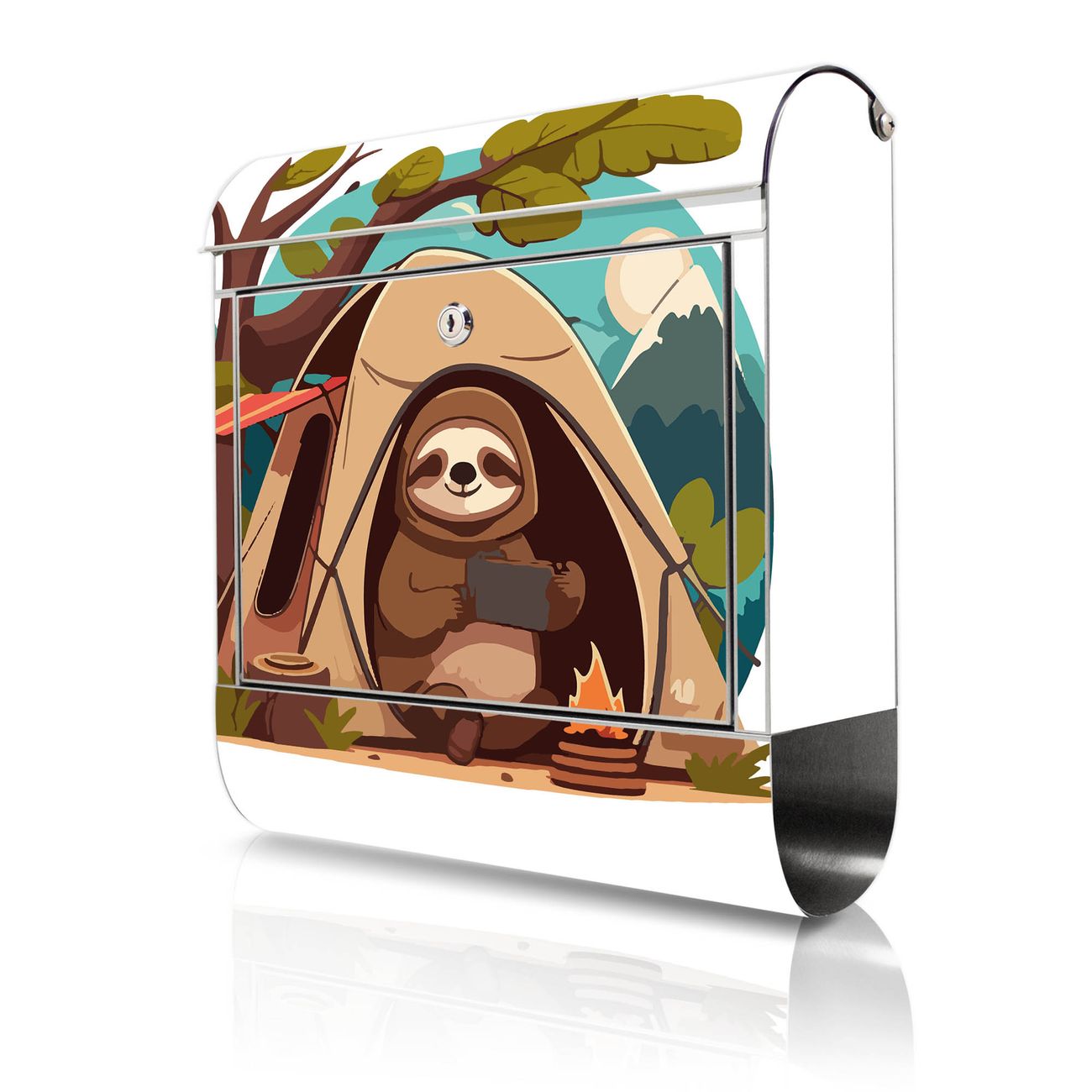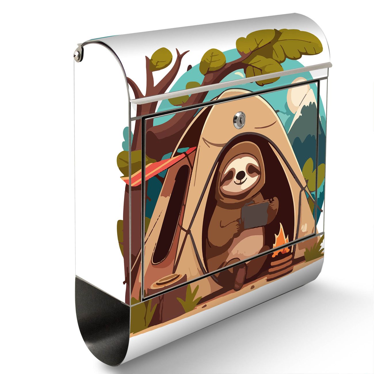 Wandbriefkasten Edelstahl Motiv Camping mit Faultier