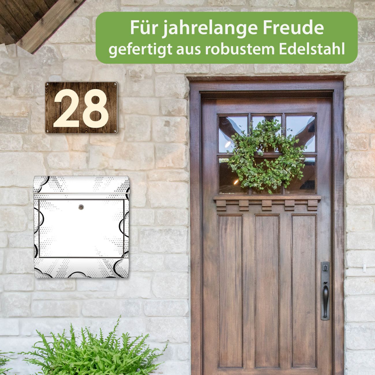 FUNKTION: Der banjado Edelstahl Briefkasten mit Motiv Motiv Comic Explosion bietet Ihnen mit seinem Fassungsvermögen genügend Platz auch für große A4 Sendungen. Das integrierte Zeitungsfach eignet sich hervorragend um unkompliziert die Tageszeitung zu fassen. Auf Wunsch können Sie bei uns den passenden Ständer kaufen und so aus dem Wandbriefkasten einen Standbriefkasten machen. DESIGN: Der Motivbriefkasten hat ein sehr ansprechendes und ausgefallenes Design, damit entlocken Sie Ihren Nachbarn und dem Postboten ein Lächeln. Heben Sie Sich ab von der tristen grauen Masse ohne auf Funktionalität zu verzichten. DETAILS: Der Design Briefkasten mit Motiv Motiv Comic Explosion besteht aus hochwertigem 18/0 Edelstahl. Das Motiv besteht aus einer wetter- und UV-resistenten Folie, die mit einem Schutzlaminat überzogen ist. Der Briefkasten wird mit Montagematerial und zwei Schlüsseln geliefert. NUTZEN: Sie können diesen Briefkasten sowohl als Wandbriefkasten montieren oder einen passenden Ständer auswählen und als Standbriefkasten einbetonieren. Die Größe bietet genügend Platz für Sendungen aller Art, das hochwertige Edelstahl ist rostfrei und die Motivfolie absolut wetterfest. SCHUTZ: Um Ihre Post optimal vor Witterungseinflüssen wie Starkregen zu schützen, empfehlen wir, den Briefkasten geschützt anzubringen. BANJADO: Ihr Briefkasten wird in Sachsen in einer kleinen Manufaktur von Hand veredelt. Die Motivfolie ist lösungsmittelfrei und schutzlaminiert, dies sorgt für einen langen Halt. Wir legen großen Wert auf die Verbindung von Funktionalität und Design. Sie erhalten Handarbeit aus Sachsen.