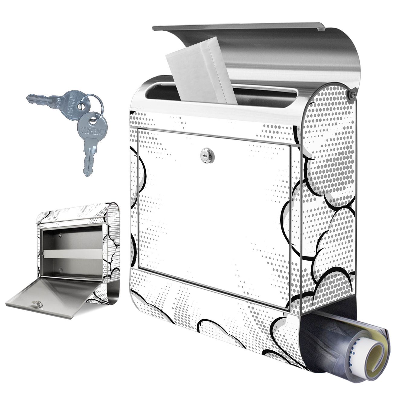 Wandbriefkasten Edelstahl Motiv Comic Explosion