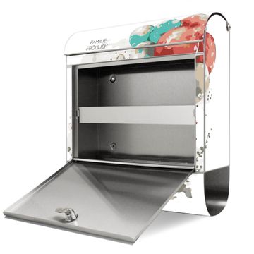 FUNKTION: Der banjado Edelstahl Briefkasten mit Motiv Motiv Corgi mit Ballons Aquarell bietet Ihnen mit seinem Fassungsvermögen genügend Platz auch für große A4 Sendungen. Das integrierte Zeitungsfach eignet sich hervorragend um unkompliziert die Tageszeitung zu fassen. Auf Wunsch können Sie bei uns den passenden Ständer kaufen und so aus dem Wandbriefkasten einen Standbriefkasten machen. DESIGN: Der Motivbriefkasten hat ein sehr ansprechendes und ausgefallenes Design, damit entlocken Sie Ihren Nachbarn und dem Postboten ein Lächeln. Heben Sie Sich ab von der tristen grauen Masse ohne auf Funktionalität zu verzichten. DETAILS: Der Design Briefkasten mit Motiv Motiv Corgi mit Ballons Aquarell besteht aus hochwertigem 18/0 Edelstahl. Das Motiv besteht aus einer wetter- und UV-resistenten Folie, die mit einem Schutzlaminat überzogen ist. Der Briefkasten wird mit Montagematerial und zwei Schlüsseln geliefert. NUTZEN: Sie können diesen Briefkasten sowohl als Wandbriefkasten montieren oder einen passenden Ständer auswählen und als Standbriefkasten einbetonieren. Die Größe bietet genügend Platz für Sendungen aller Art, das hochwertige Edelstahl ist rostfrei und die Motivfolie absolut wetterfest. SCHUTZ: Um Ihre Post optimal vor Witterungseinflüssen wie Starkregen zu schützen, empfehlen wir, den Briefkasten geschützt anzubringen. BANJADO: Ihr Briefkasten wird in Sachsen in einer kleinen Manufaktur von Hand veredelt. Die Motivfolie ist lösungsmittelfrei und schutzlaminiert, dies sorgt für einen langen Halt. Wir legen großen Wert auf die Verbindung von Funktionalität und Design. Sie erhalten Handarbeit aus Sachsen.