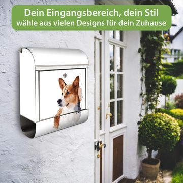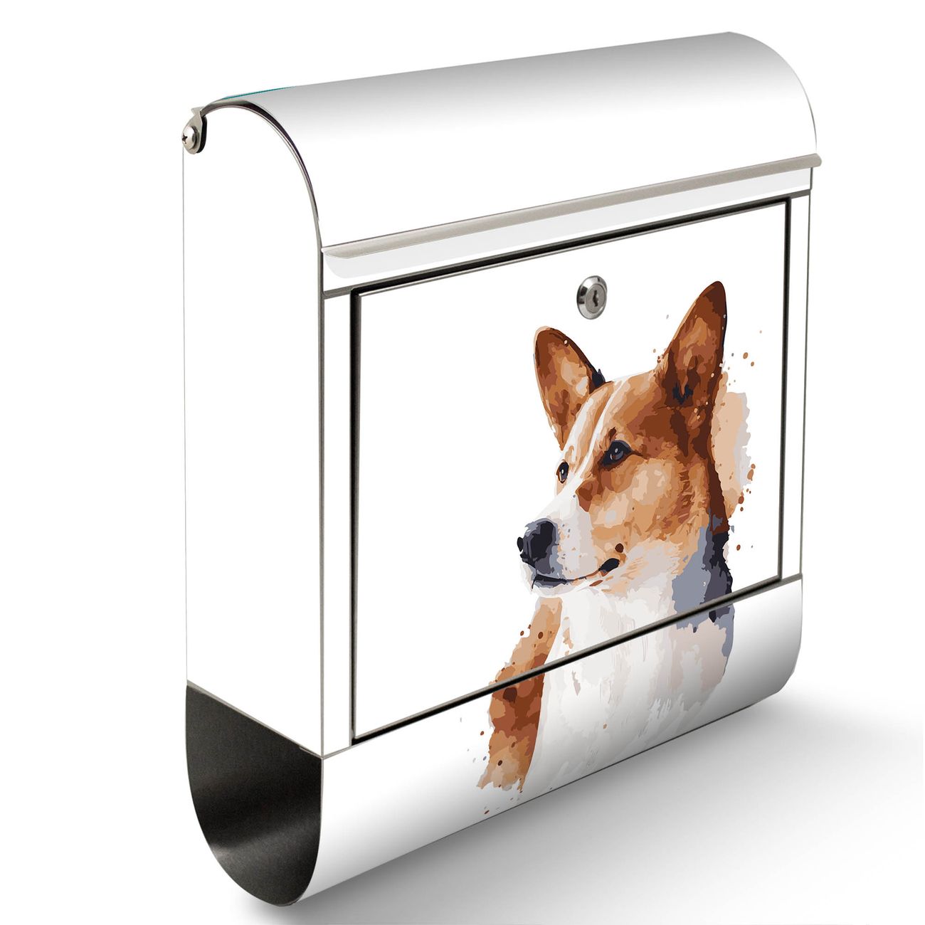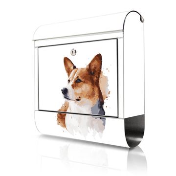 Wandbriefkasten Edelstahl Motiv Corgi Porträt Aquarell