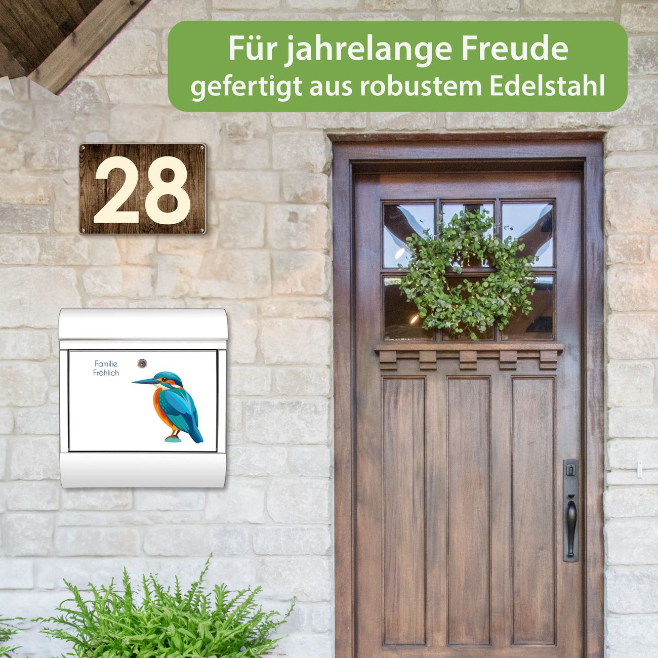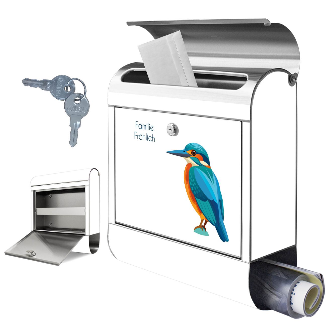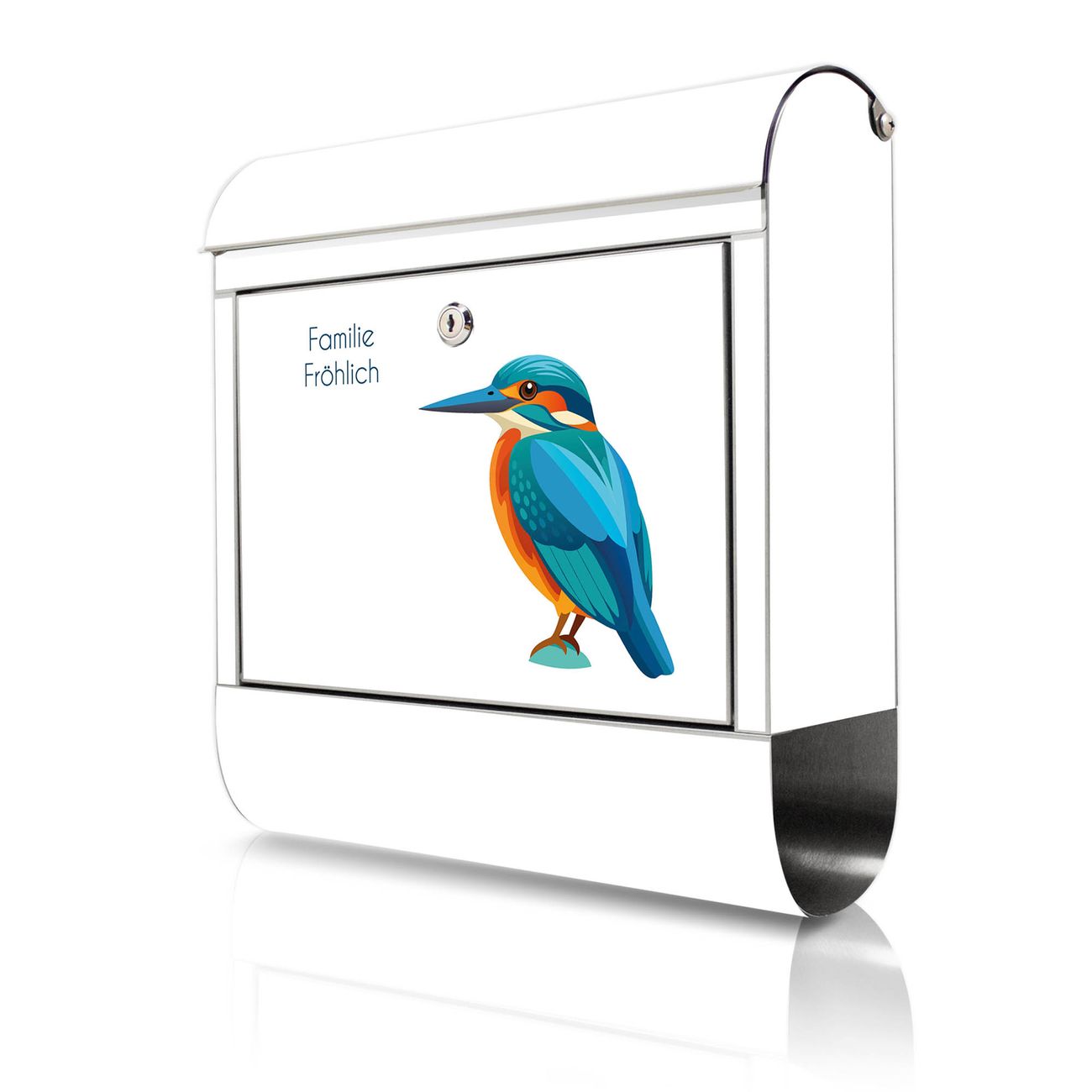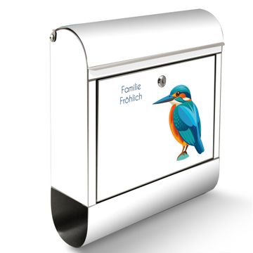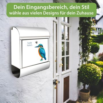 Wandbriefkasten Edelstahl Motiv Eisvogel Illustration