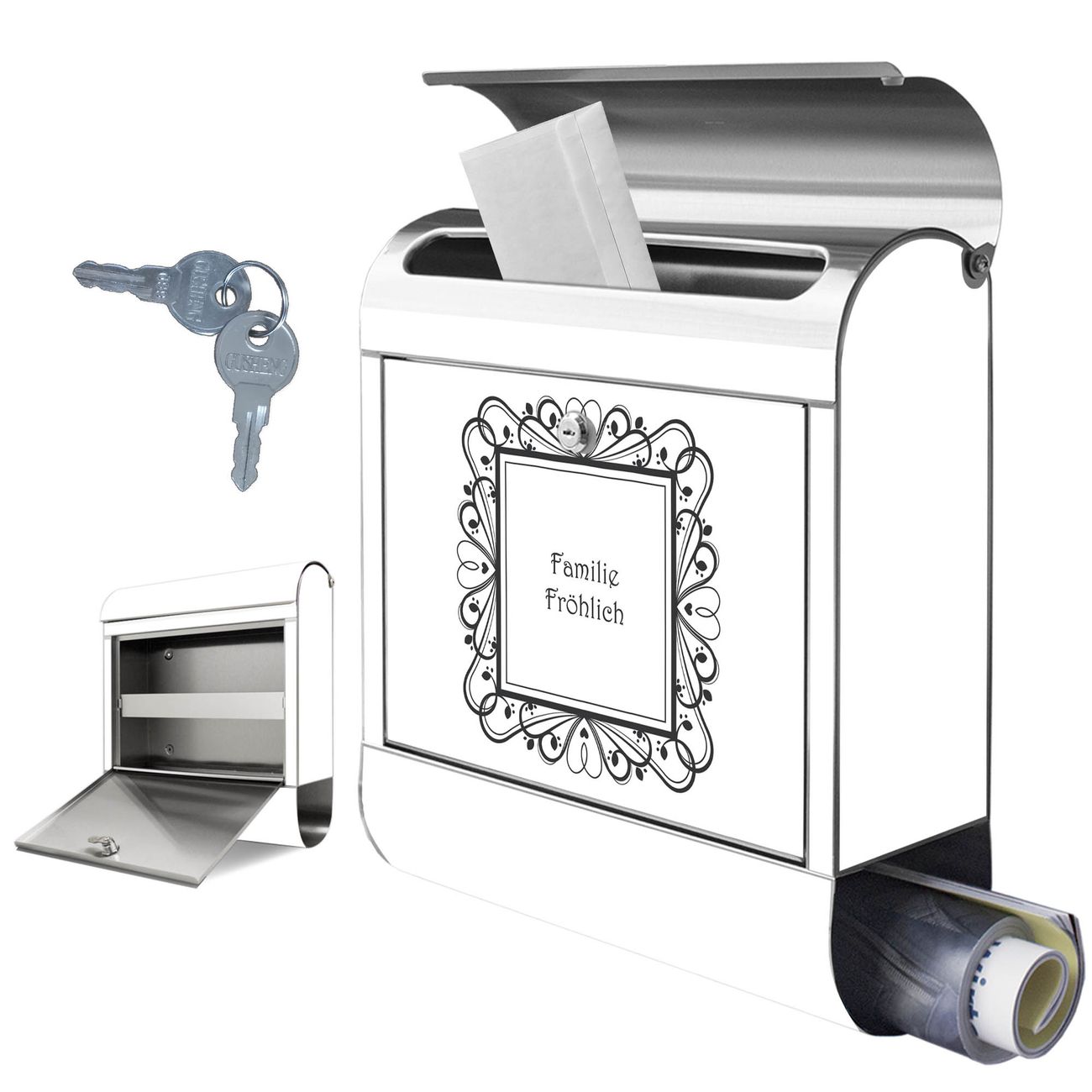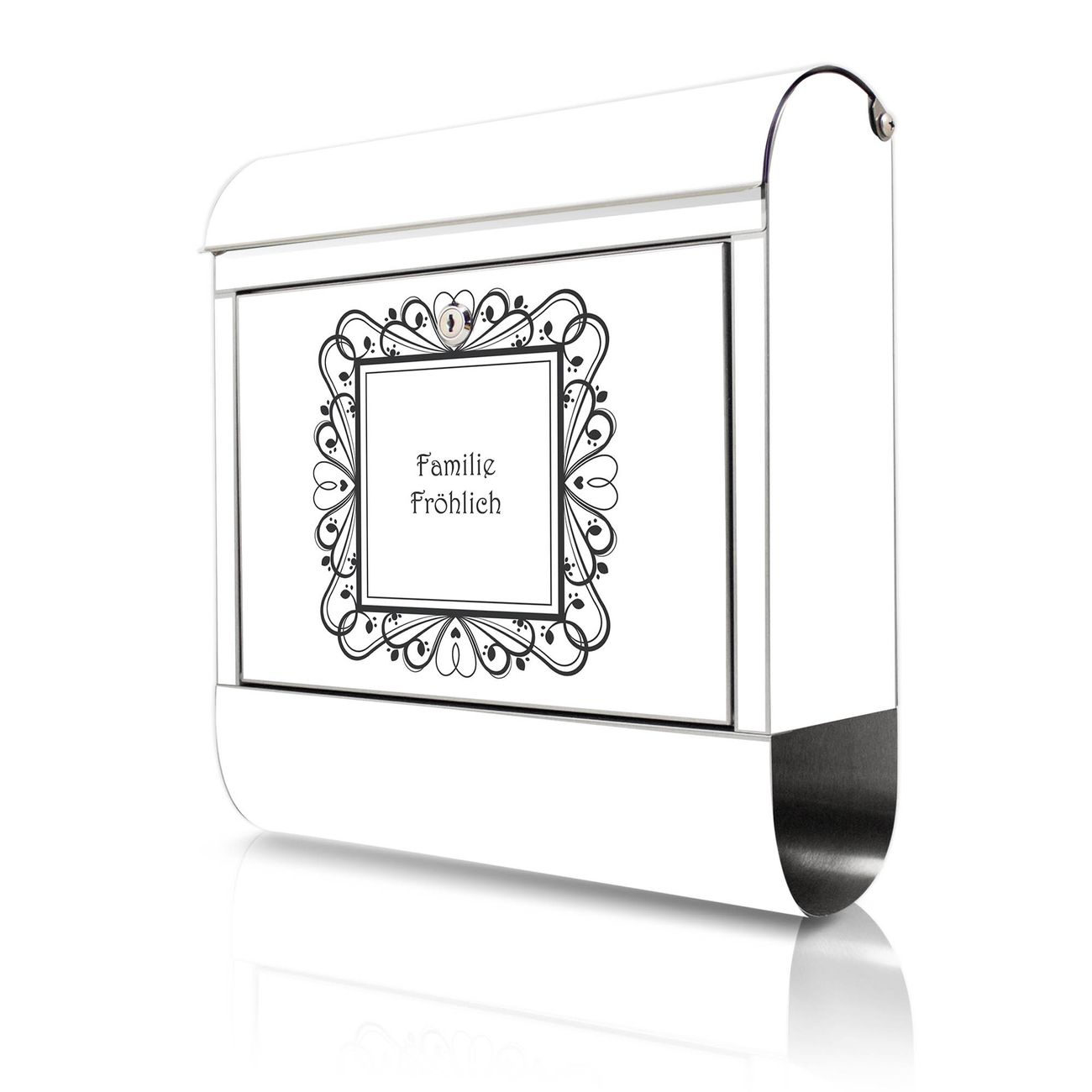 Wandbriefkasten Edelstahl Motiv Elegantes Herz-Ornament