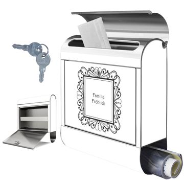 FUNKTION: Der banjado Edelstahl Briefkasten mit Motiv Motiv Elegantes Herz-Ornament bietet Ihnen mit seinem Fassungsvermögen genügend Platz auch für große A4 Sendungen. Das integrierte Zeitungsfach eignet sich hervorragend um unkompliziert die Tageszeitung zu fassen. Auf Wunsch können Sie bei uns den passenden Ständer kaufen und so aus dem Wandbriefkasten einen Standbriefkasten machen. DESIGN: Der Motivbriefkasten hat ein sehr ansprechendes und ausgefallenes Design, damit entlocken Sie Ihren Nachbarn und dem Postboten ein Lächeln. Heben Sie Sich ab von der tristen grauen Masse ohne auf Funktionalität zu verzichten. DETAILS: Der Design Briefkasten mit Motiv Motiv Elegantes Herz-Ornament besteht aus hochwertigem 18/0 Edelstahl. Das Motiv besteht aus einer wetter- und UV-resistenten Folie, die mit einem Schutzlaminat überzogen ist. Der Briefkasten wird mit Montagematerial und zwei Schlüsseln geliefert. NUTZEN: Sie können diesen Briefkasten sowohl als Wandbriefkasten montieren oder einen passenden Ständer auswählen und als Standbriefkasten einbetonieren. Die Größe bietet genügend Platz für Sendungen aller Art, das hochwertige Edelstahl ist rostfrei und die Motivfolie absolut wetterfest. SCHUTZ: Um Ihre Post optimal vor Witterungseinflüssen wie Starkregen zu schützen, empfehlen wir, den Briefkasten geschützt anzubringen. BANJADO: Ihr Briefkasten wird in Sachsen in einer kleinen Manufaktur von Hand veredelt. Die Motivfolie ist lösungsmittelfrei und schutzlaminiert, dies sorgt für einen langen Halt. Wir legen großen Wert auf die Verbindung von Funktionalität und Design. Sie erhalten Handarbeit aus Sachsen.