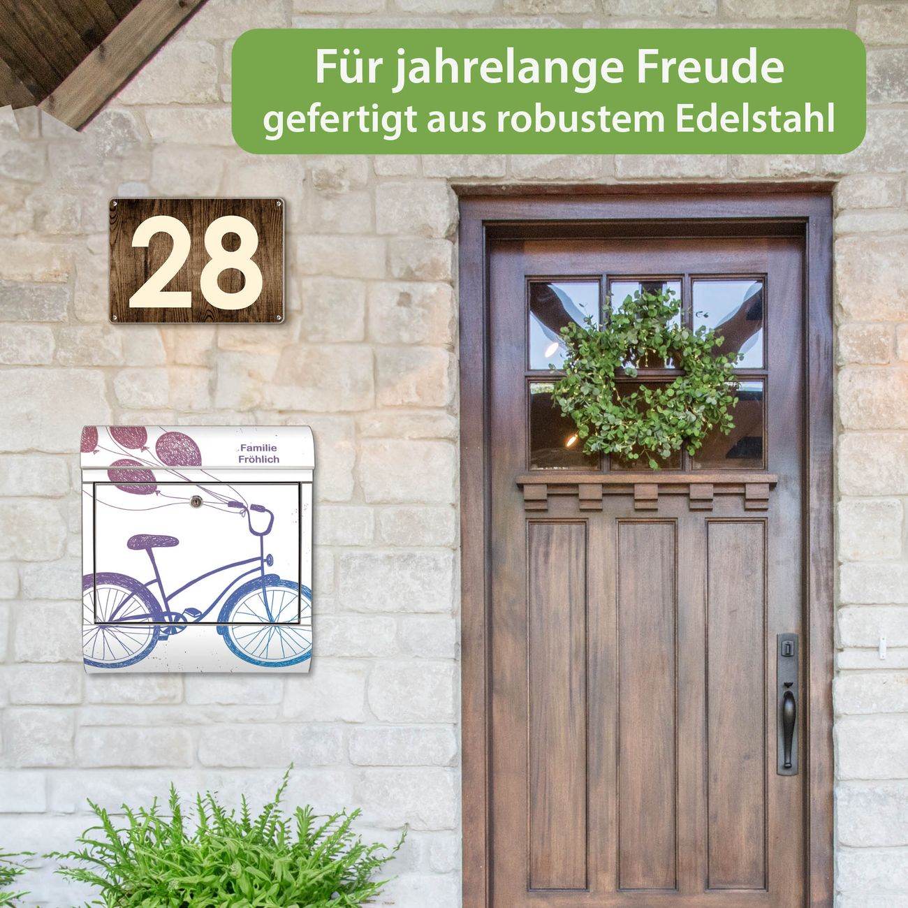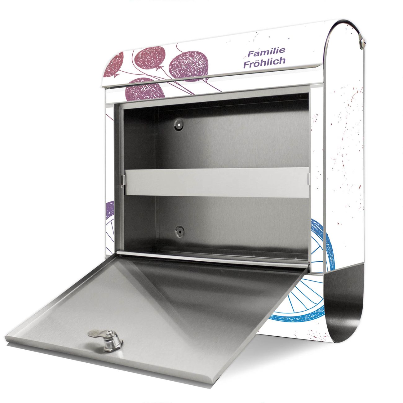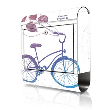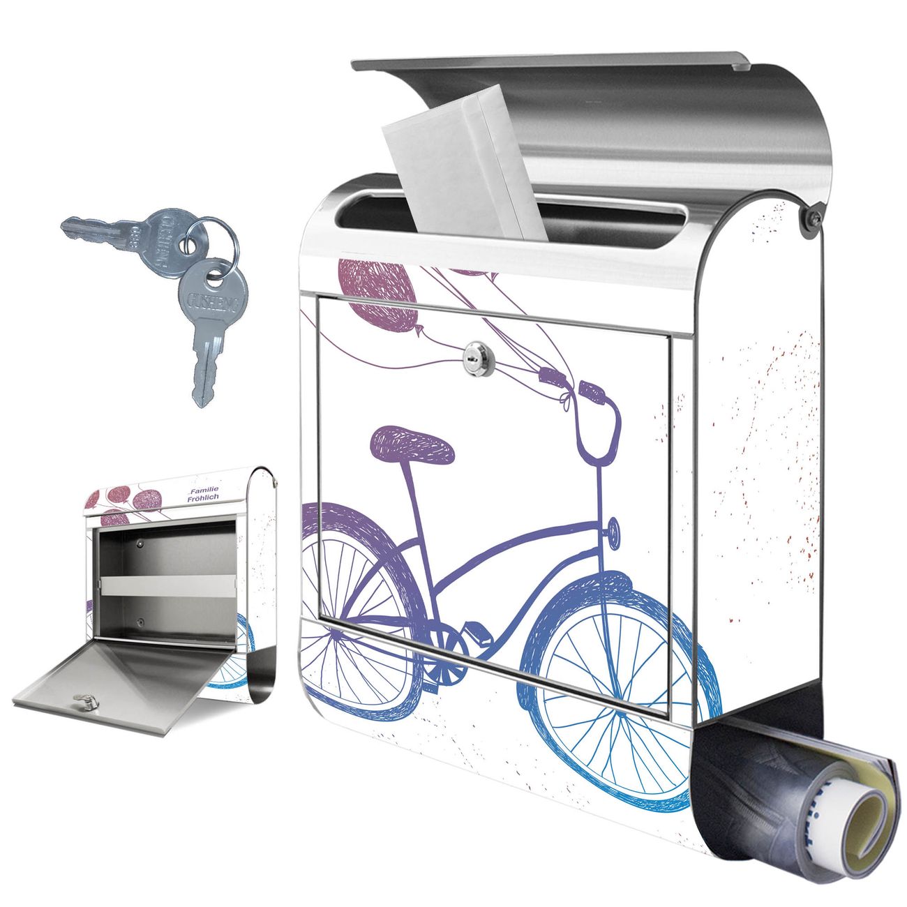 Wandbriefkasten Edelstahl Motiv Fahrrad mit Luftballons