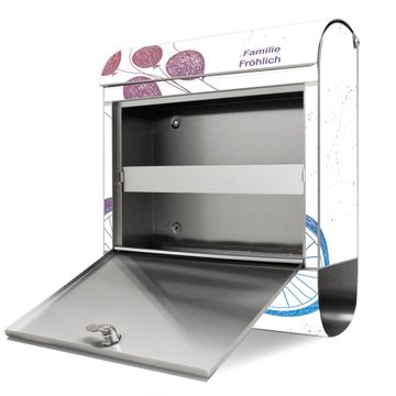 FUNKTION: Der banjado Edelstahl Briefkasten mit Motiv Motiv Fahrrad mit Luftballons bietet Ihnen mit seinem Fassungsvermögen genügend Platz auch für große A4 Sendungen. Das integrierte Zeitungsfach eignet sich hervorragend um unkompliziert die Tageszeitung zu fassen. Auf Wunsch können Sie bei uns den passenden Ständer kaufen und so aus dem Wandbriefkasten einen Standbriefkasten machen. DESIGN: Der Motivbriefkasten hat ein sehr ansprechendes und ausgefallenes Design, damit entlocken Sie Ihren Nachbarn und dem Postboten ein Lächeln. Heben Sie Sich ab von der tristen grauen Masse ohne auf Funktionalität zu verzichten. DETAILS: Der Design Briefkasten mit Motiv Motiv Fahrrad mit Luftballons besteht aus hochwertigem 18/0 Edelstahl. Das Motiv besteht aus einer wetter- und UV-resistenten Folie, die mit einem Schutzlaminat überzogen ist. Der Briefkasten wird mit Montagematerial und zwei Schlüsseln geliefert. NUTZEN: Sie können diesen Briefkasten sowohl als Wandbriefkasten montieren oder einen passenden Ständer auswählen und als Standbriefkasten einbetonieren. Die Größe bietet genügend Platz für Sendungen aller Art, das hochwertige Edelstahl ist rostfrei und die Motivfolie absolut wetterfest. SCHUTZ: Um Ihre Post optimal vor Witterungseinflüssen wie Starkregen zu schützen, empfehlen wir, den Briefkasten geschützt anzubringen. BANJADO: Ihr Briefkasten wird in Sachsen in einer kleinen Manufaktur von Hand veredelt. Die Motivfolie ist lösungsmittelfrei und schutzlaminiert, dies sorgt für einen langen Halt. Wir legen großen Wert auf die Verbindung von Funktionalität und Design. Sie erhalten Handarbeit aus Sachsen.