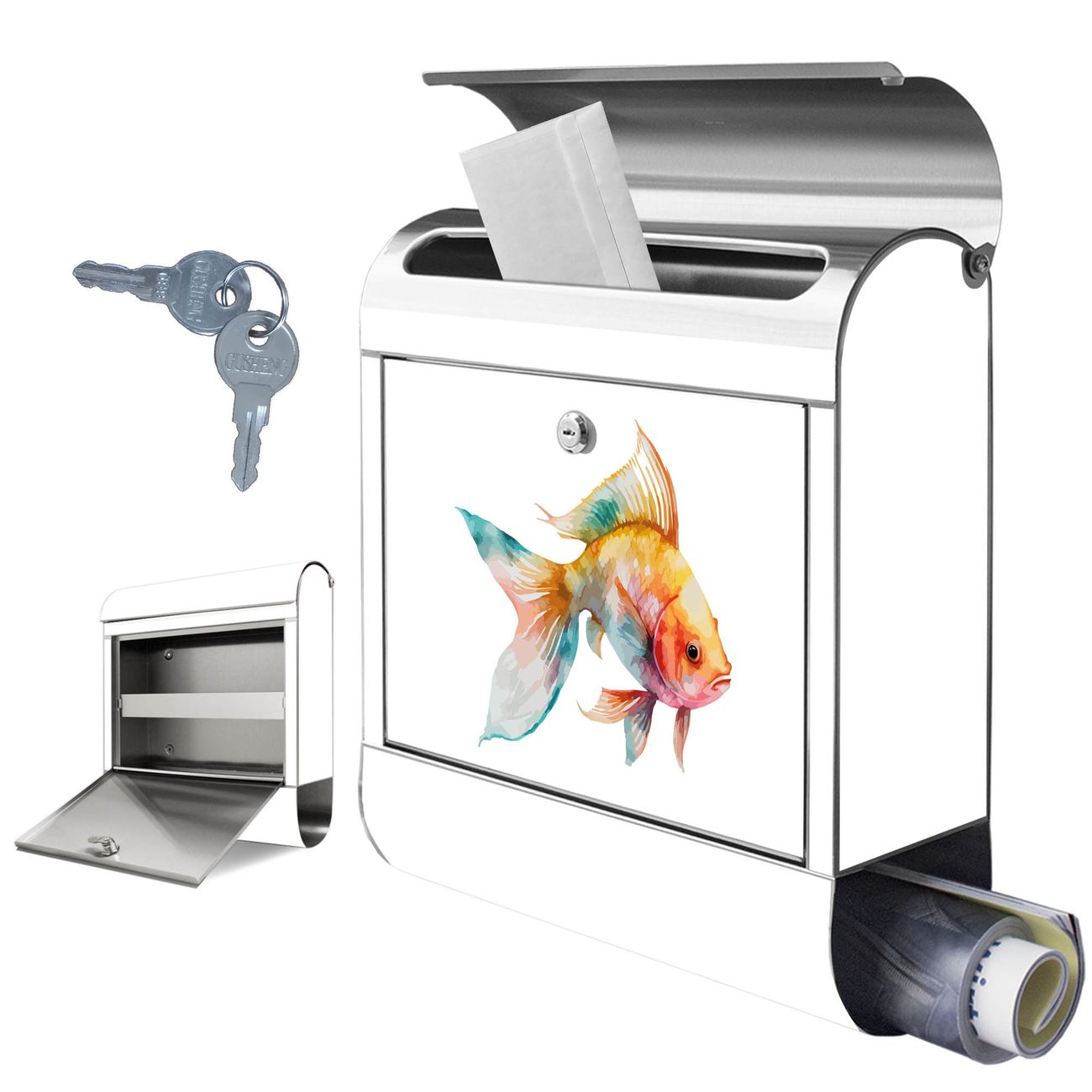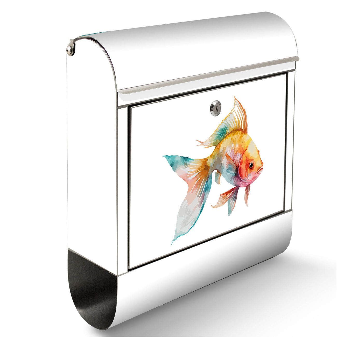 Wandbriefkasten Edelstahl Motiv Farbenfroher Goldfisch