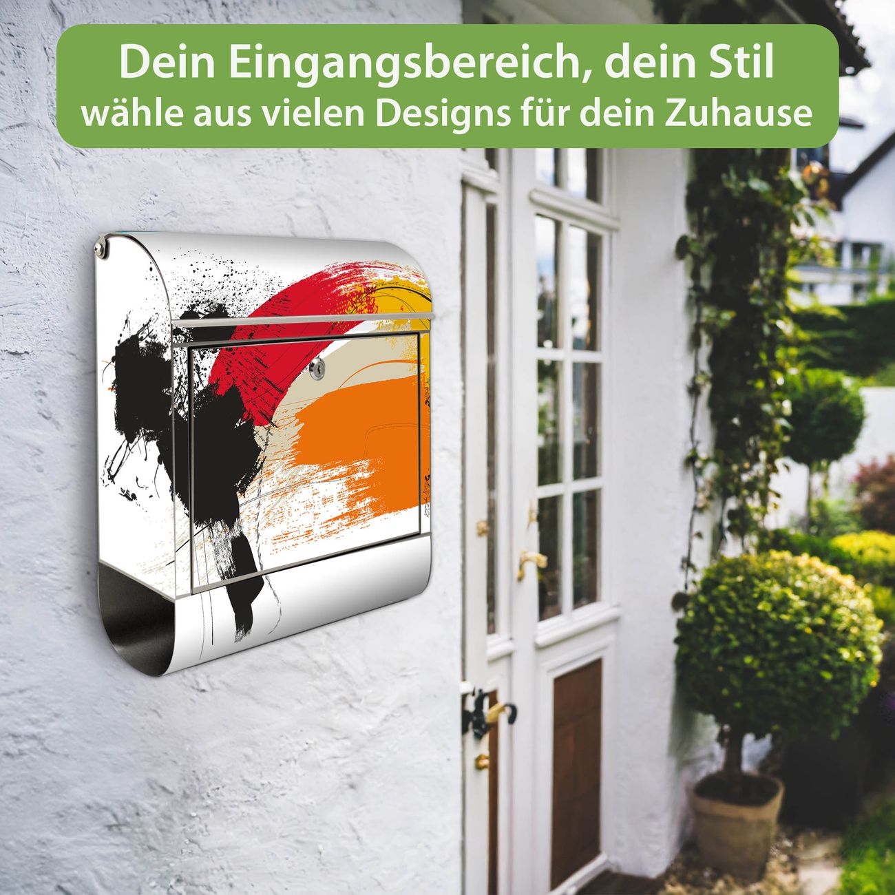 Wandbriefkasten Edelstahl Motiv Farbexplosion