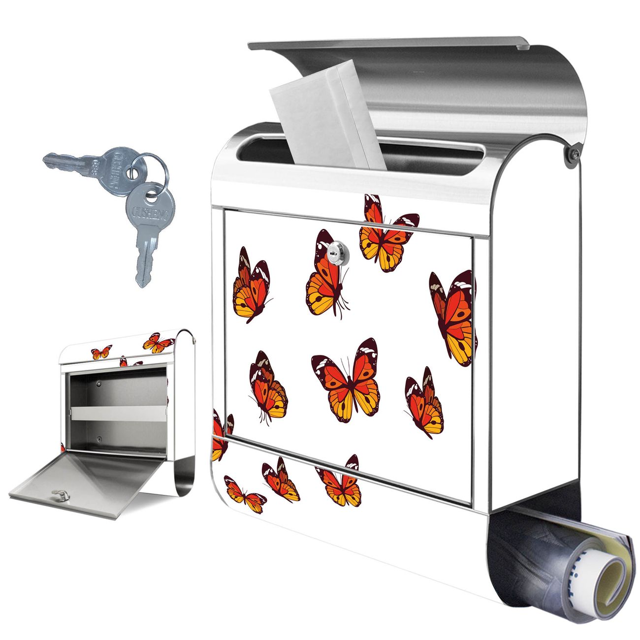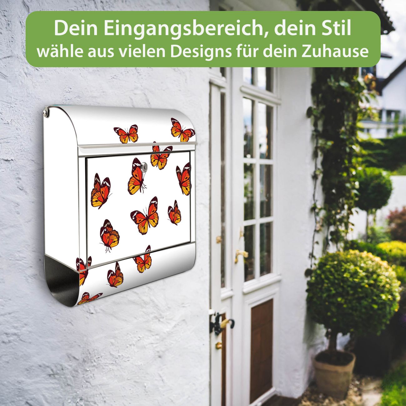 Wandbriefkasten Edelstahl Motiv Farbige Schmetterlinge