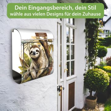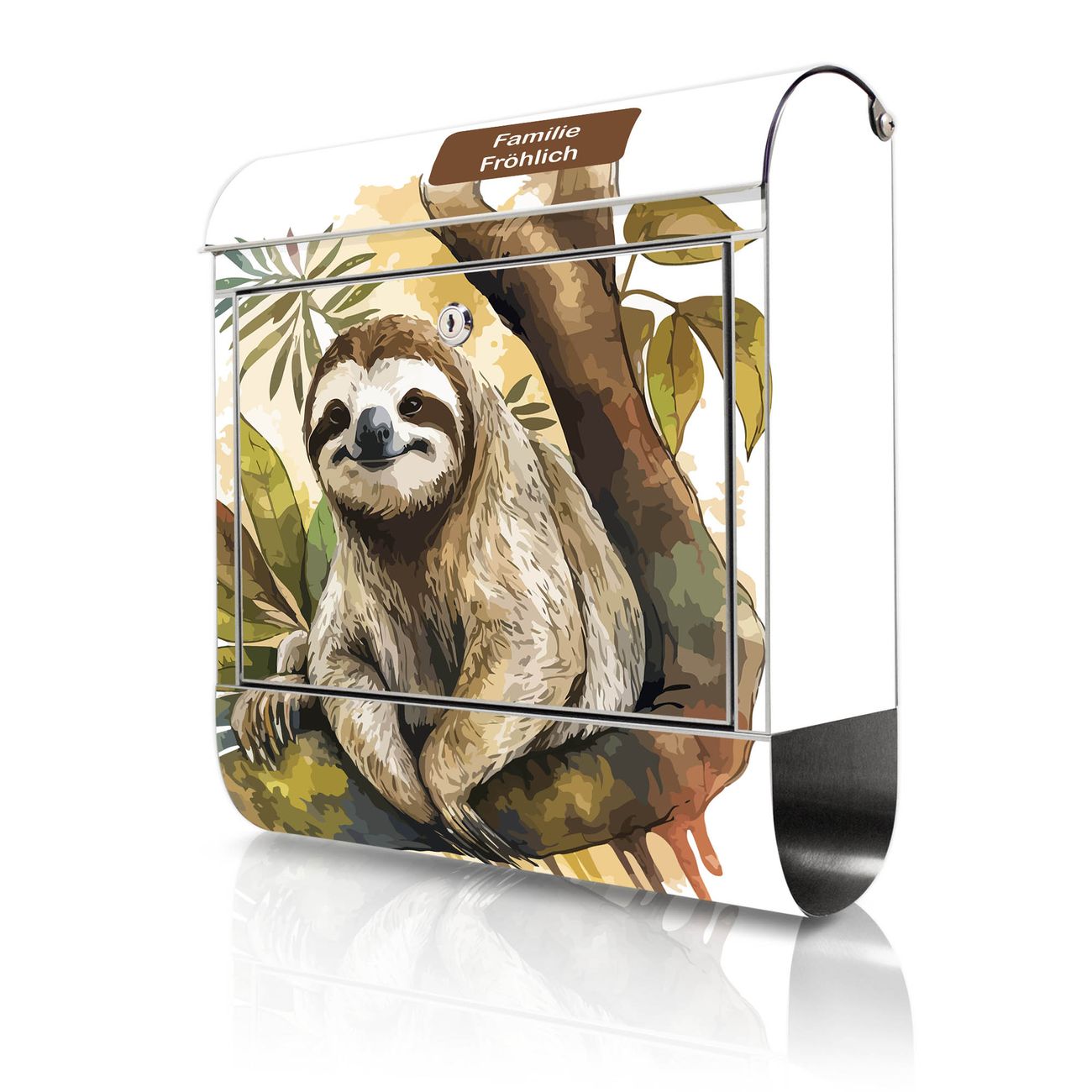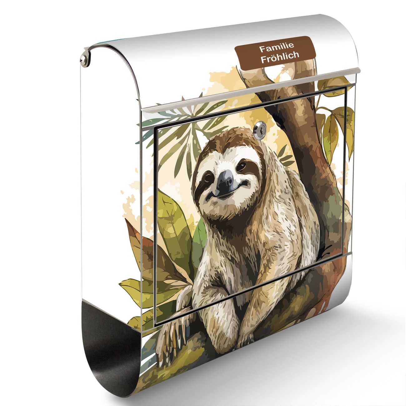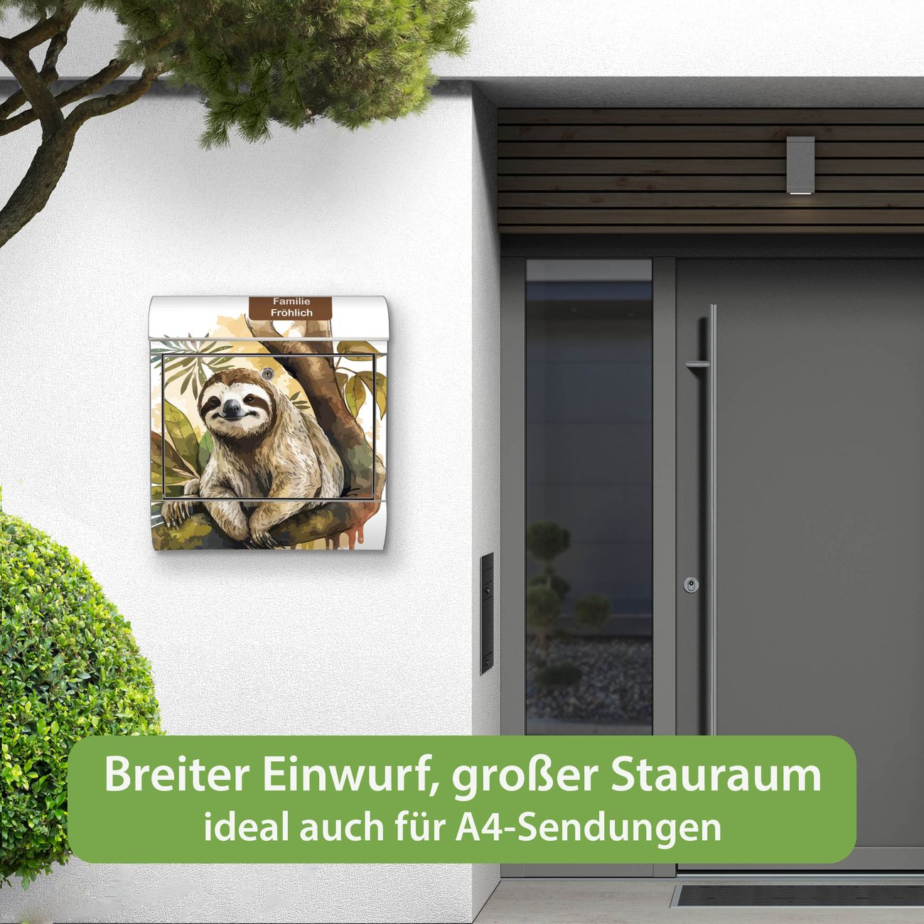 Wandbriefkasten Edelstahl Motiv Faultier mit Blütenmähne