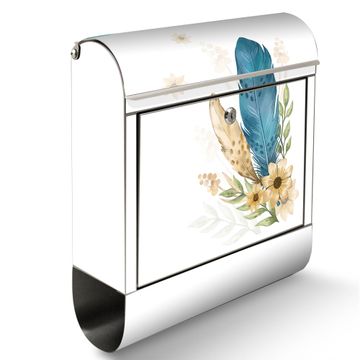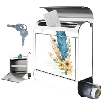 Wandbriefkasten Edelstahl Motiv Federn und Blüten Boho