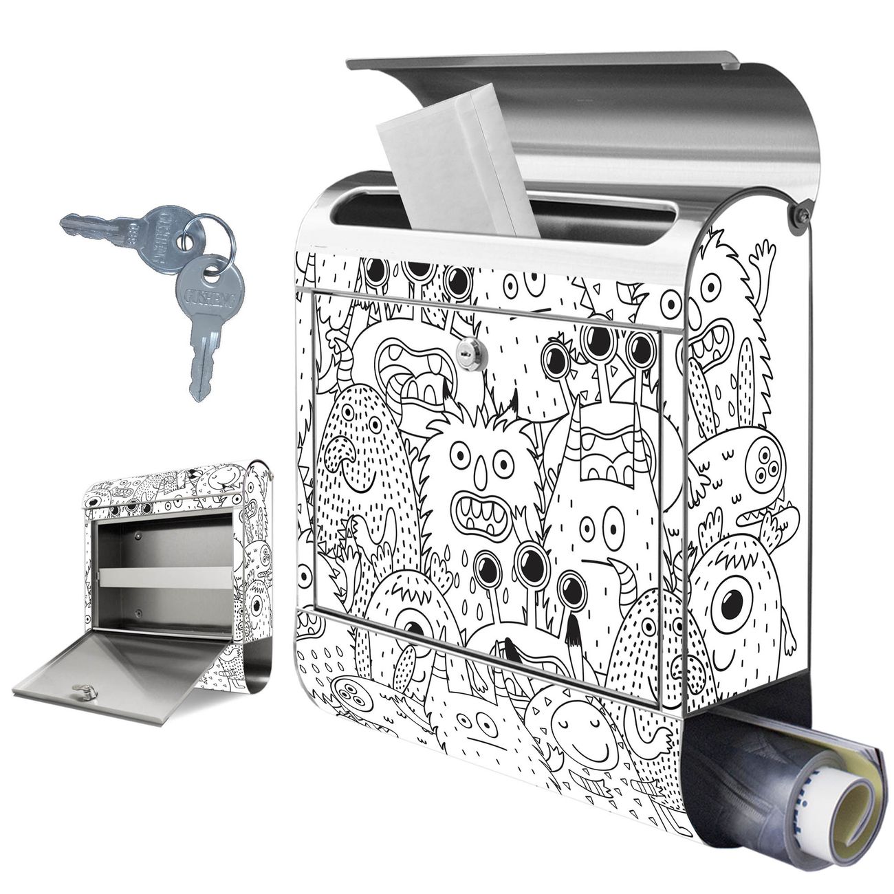 Wandbriefkasten Edelstahl Motiv Fellmonsterchen 2
