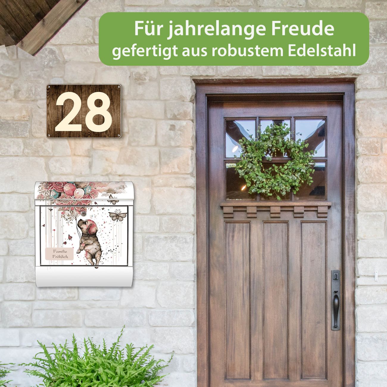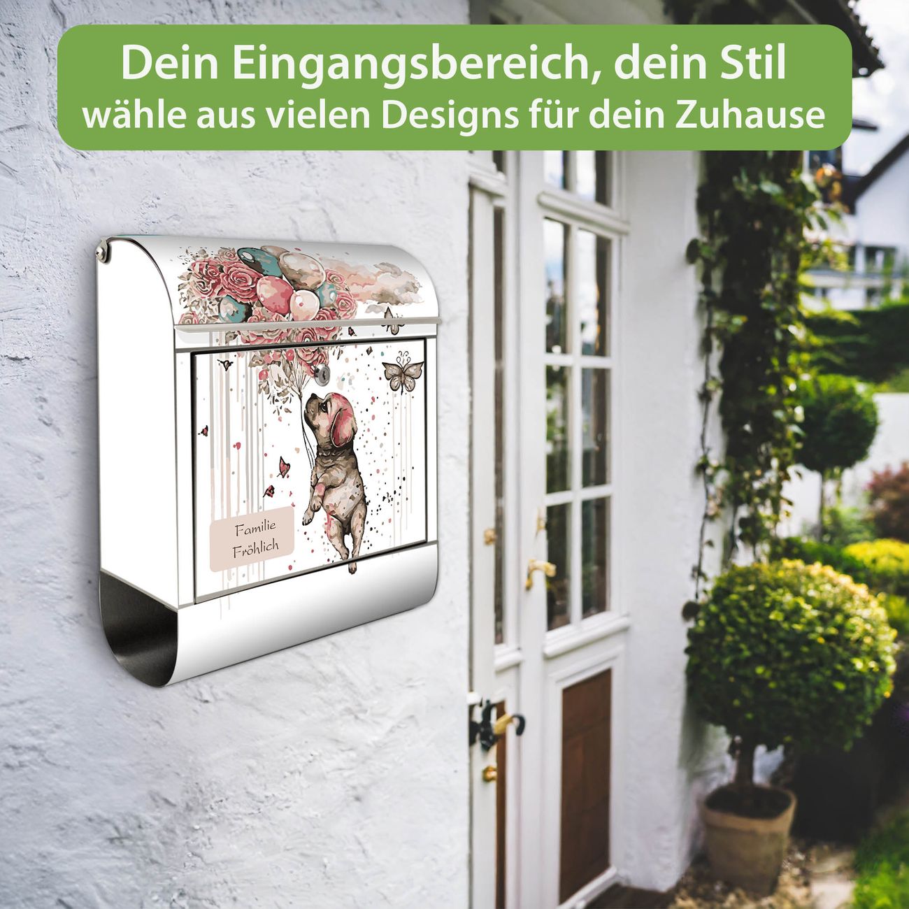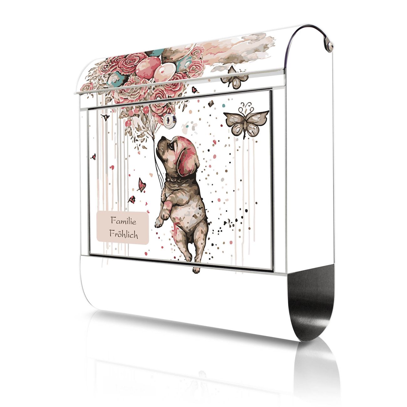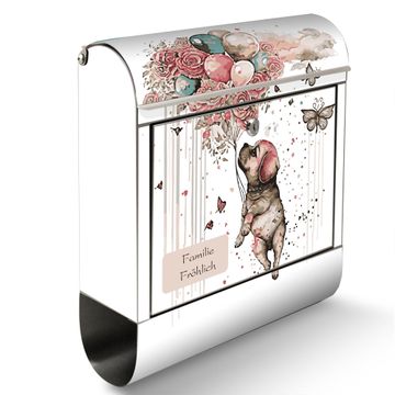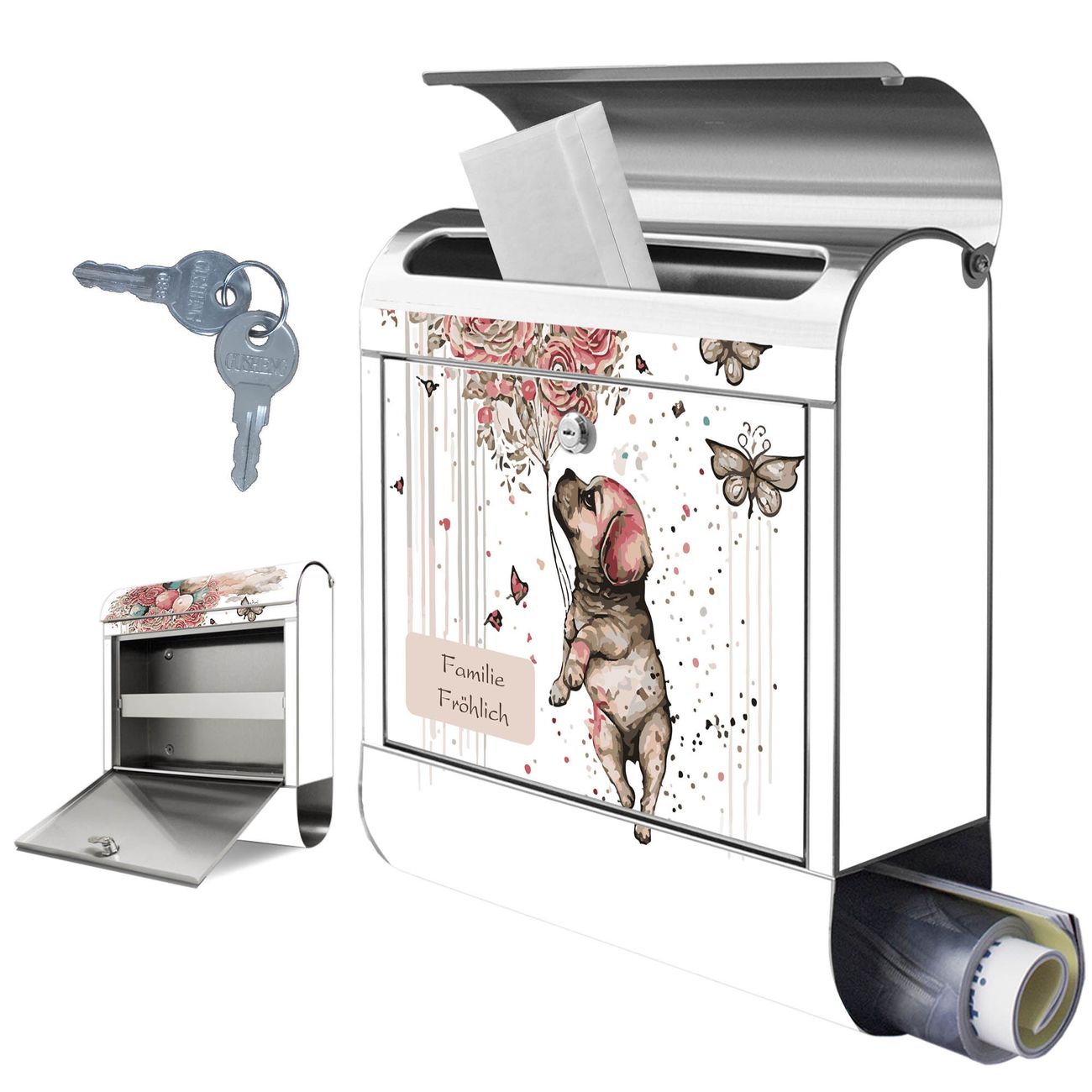 Wandbriefkasten Edelstahl Motiv Fliegender Welpe