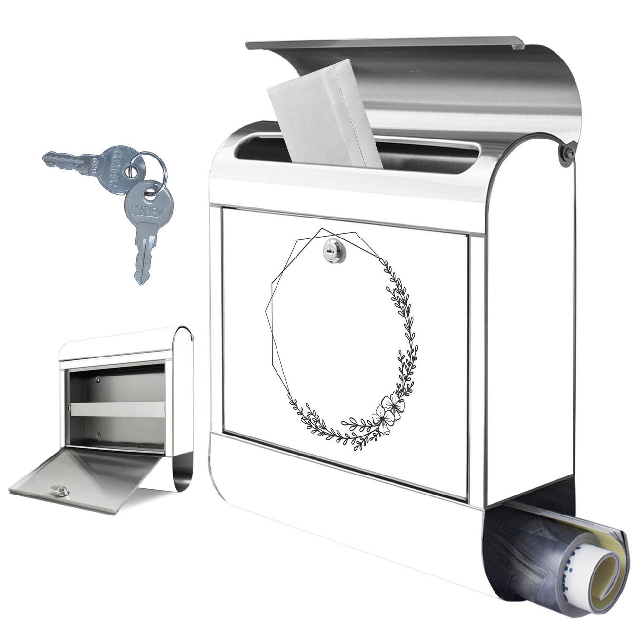 Wandbriefkasten Edelstahl Motiv Floral Geometric Frame