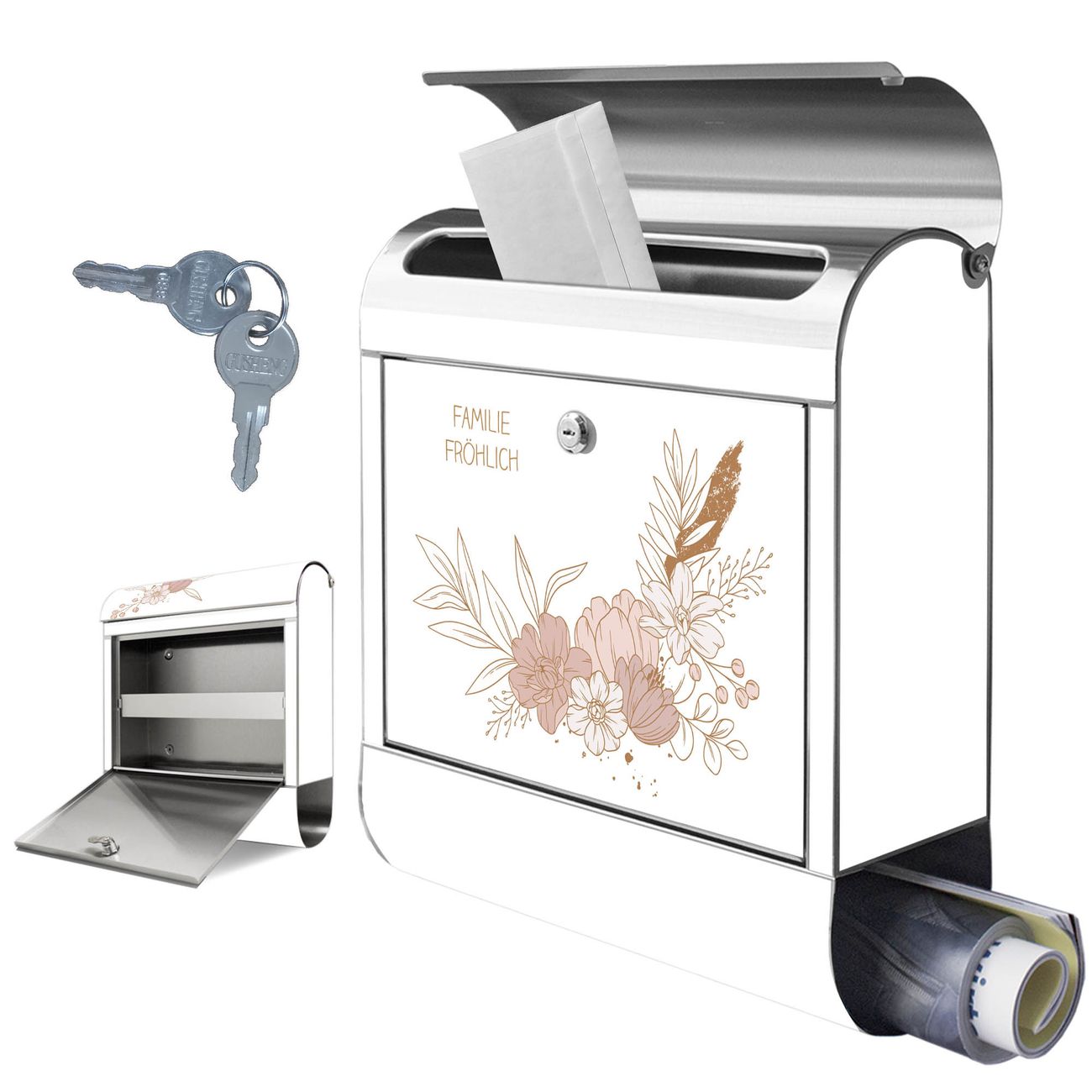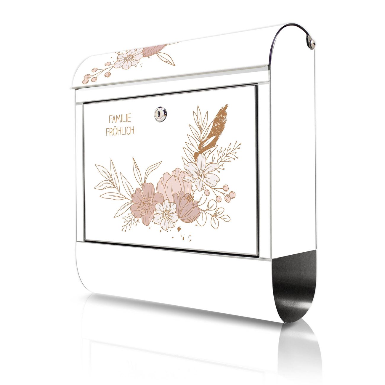 Wandbriefkasten Edelstahl Motiv Floral Geometrie
