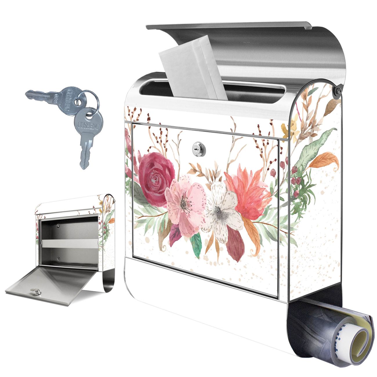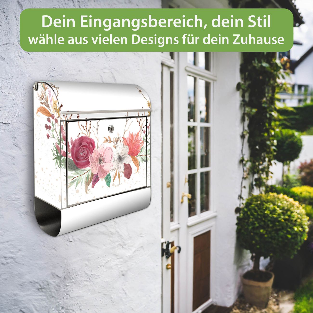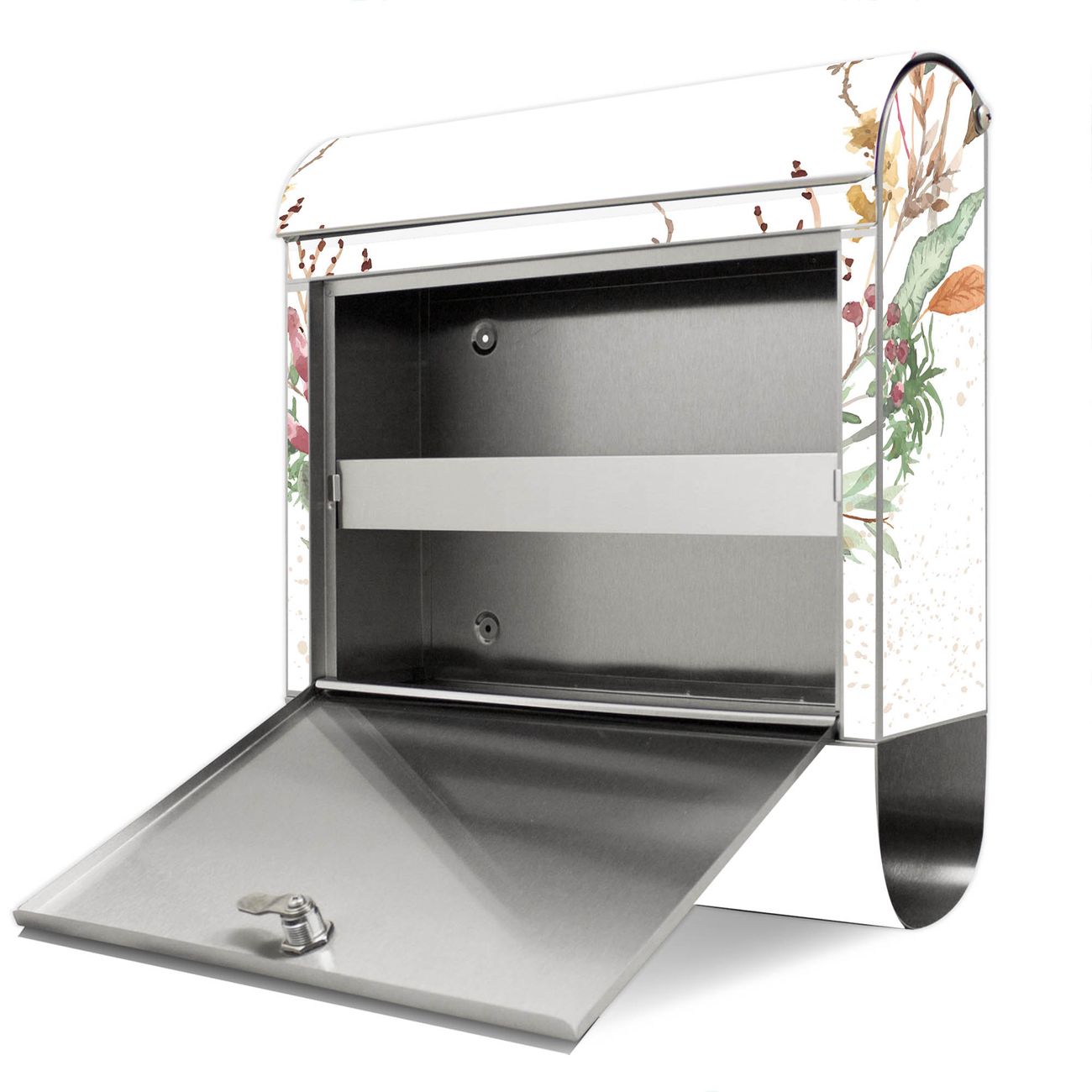 Wandbriefkasten Edelstahl Motiv Floraler Blumenkranz