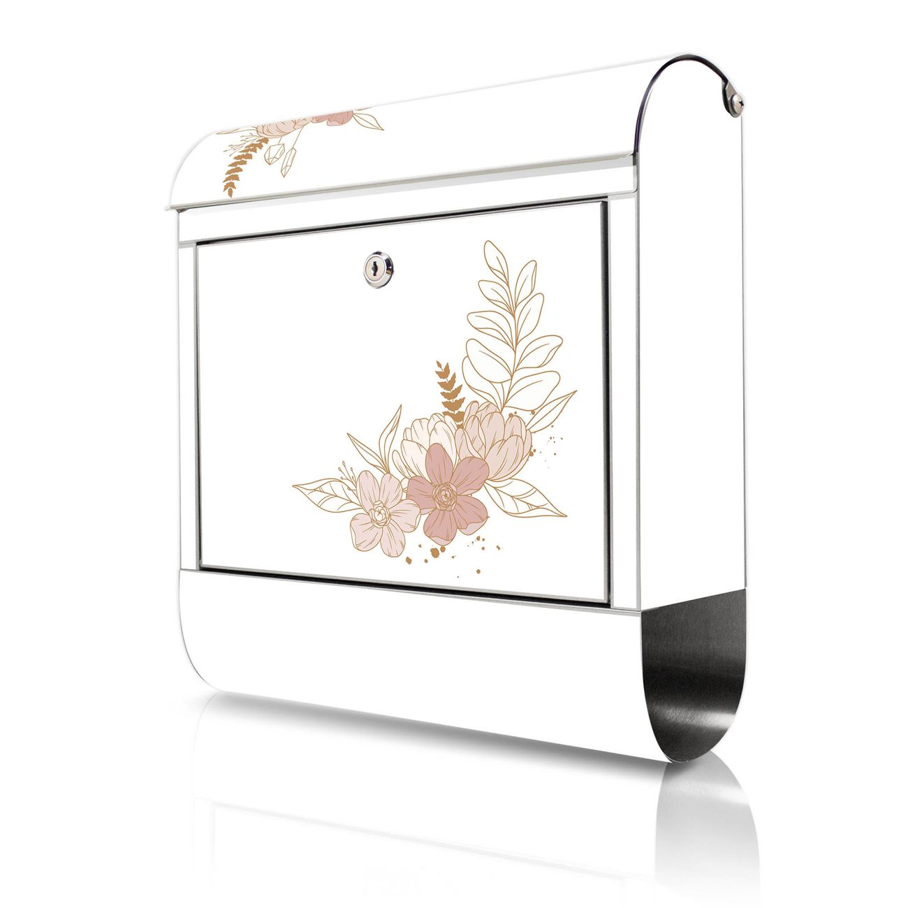 Wandbriefkasten Edelstahl Motiv Floraler Kranz