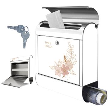 Wandbriefkasten Edelstahl Motiv Floraler Kranz