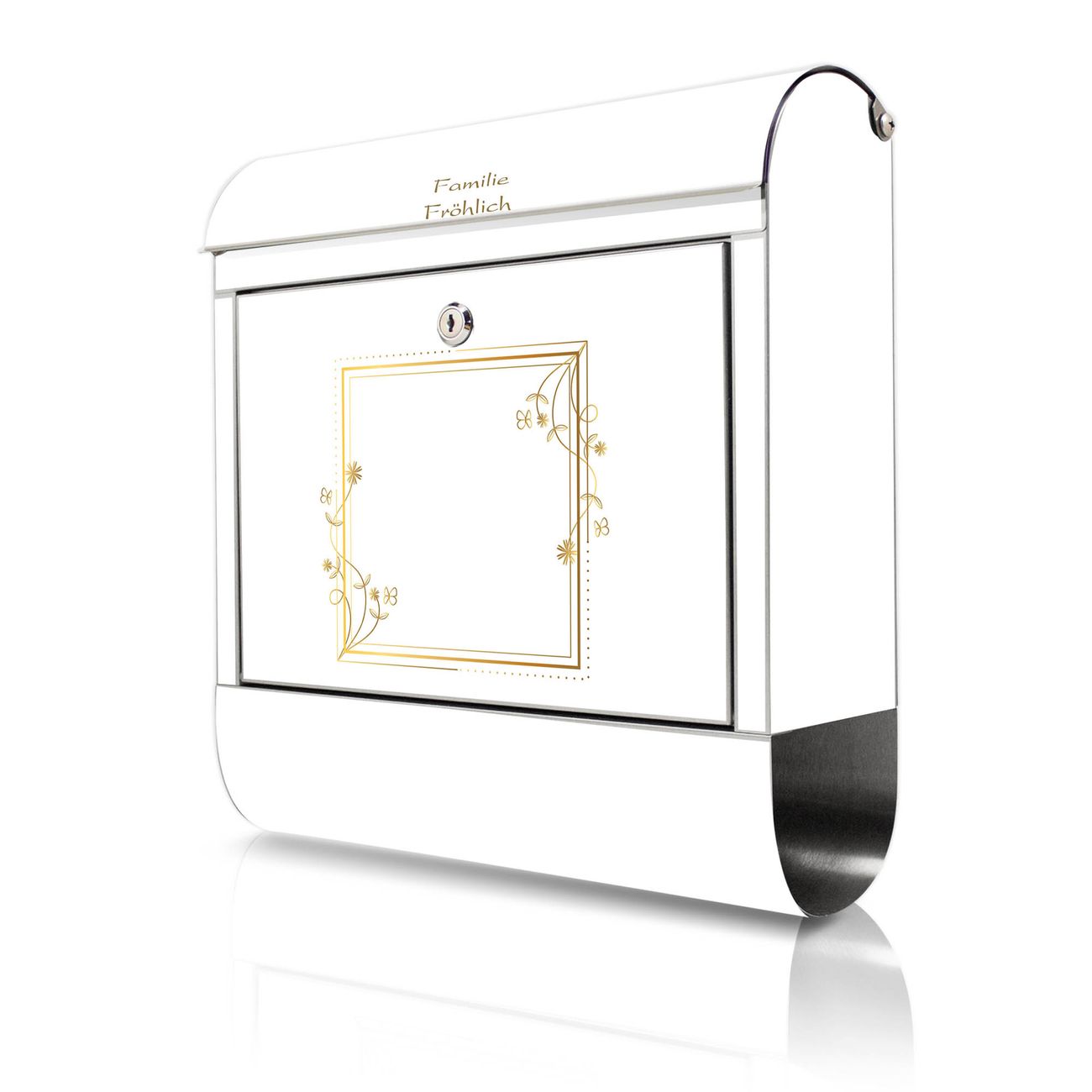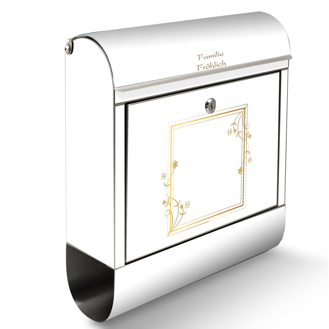 Wandbriefkasten Edelstahl Motiv Floraler Rahmen 2