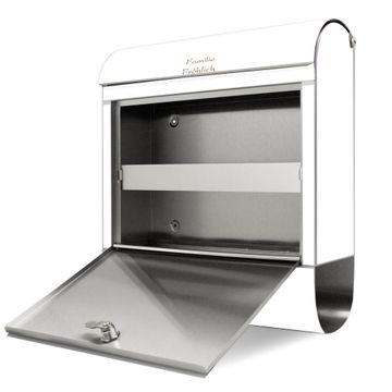 FUNKTION: Der banjado Edelstahl Briefkasten mit Motiv Motiv Floraler Rahmen 2 bietet Ihnen mit seinem Fassungsvermögen genügend Platz auch für große A4 Sendungen. Das integrierte Zeitungsfach eignet sich hervorragend um unkompliziert die Tageszeitung zu fassen. Auf Wunsch können Sie bei uns den passenden Ständer kaufen und so aus dem Wandbriefkasten einen Standbriefkasten machen. DESIGN: Der Motivbriefkasten hat ein sehr ansprechendes und ausgefallenes Design, damit entlocken Sie Ihren Nachbarn und dem Postboten ein Lächeln. Heben Sie Sich ab von der tristen grauen Masse ohne auf Funktionalität zu verzichten. DETAILS: Der Design Briefkasten mit Motiv Motiv Floraler Rahmen 2 besteht aus hochwertigem 18/0 Edelstahl. Das Motiv besteht aus einer wetter- und UV-resistenten Folie, die mit einem Schutzlaminat überzogen ist. Der Briefkasten wird mit Montagematerial und zwei Schlüsseln geliefert. NUTZEN: Sie können diesen Briefkasten sowohl als Wandbriefkasten montieren oder einen passenden Ständer auswählen und als Standbriefkasten einbetonieren. Die Größe bietet genügend Platz für Sendungen aller Art, das hochwertige Edelstahl ist rostfrei und die Motivfolie absolut wetterfest. SCHUTZ: Um Ihre Post optimal vor Witterungseinflüssen wie Starkregen zu schützen, empfehlen wir, den Briefkasten geschützt anzubringen. BANJADO: Ihr Briefkasten wird in Sachsen in einer kleinen Manufaktur von Hand veredelt. Die Motivfolie ist lösungsmittelfrei und schutzlaminiert, dies sorgt für einen langen Halt. Wir legen großen Wert auf die Verbindung von Funktionalität und Design. Sie erhalten Handarbeit aus Sachsen.
