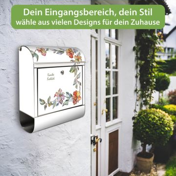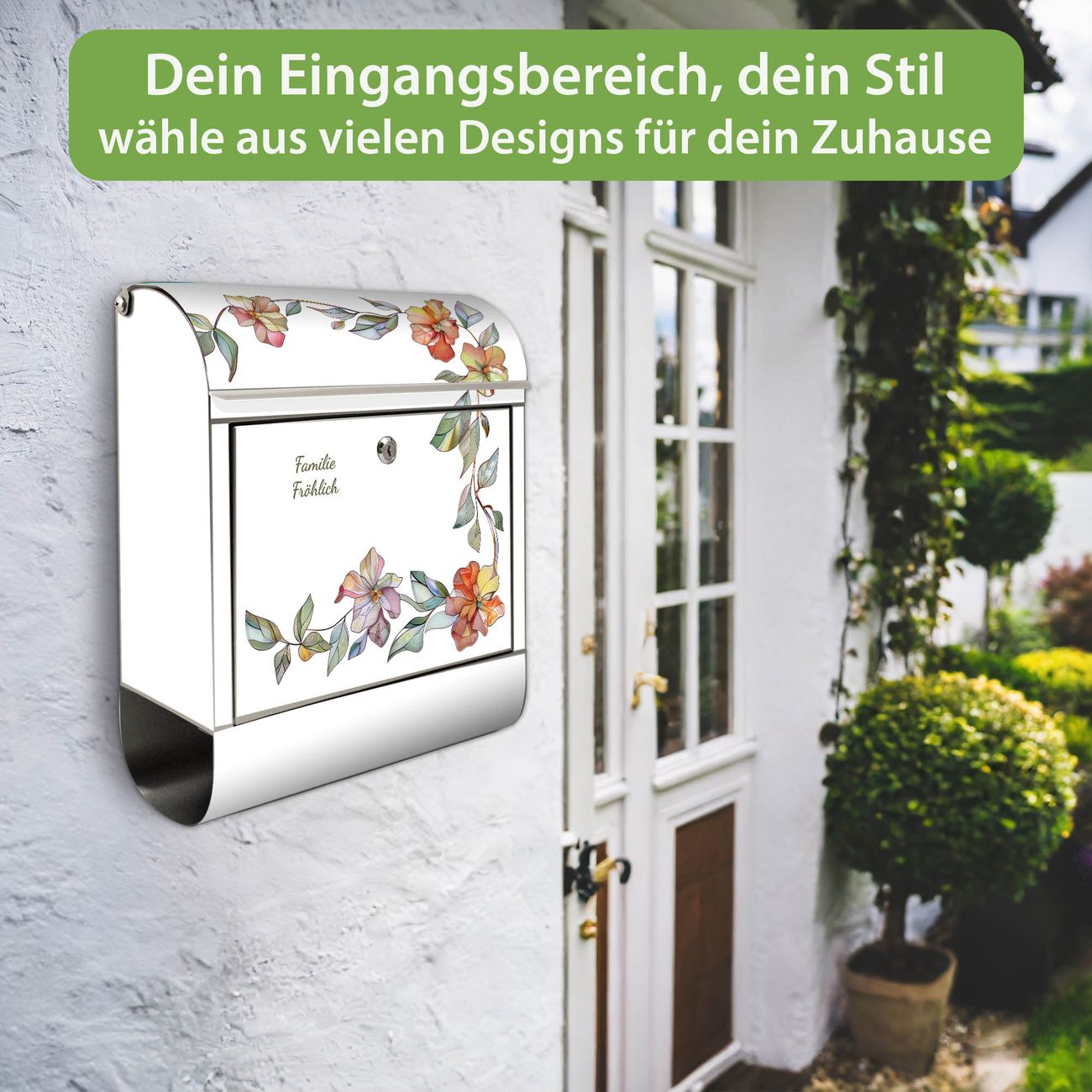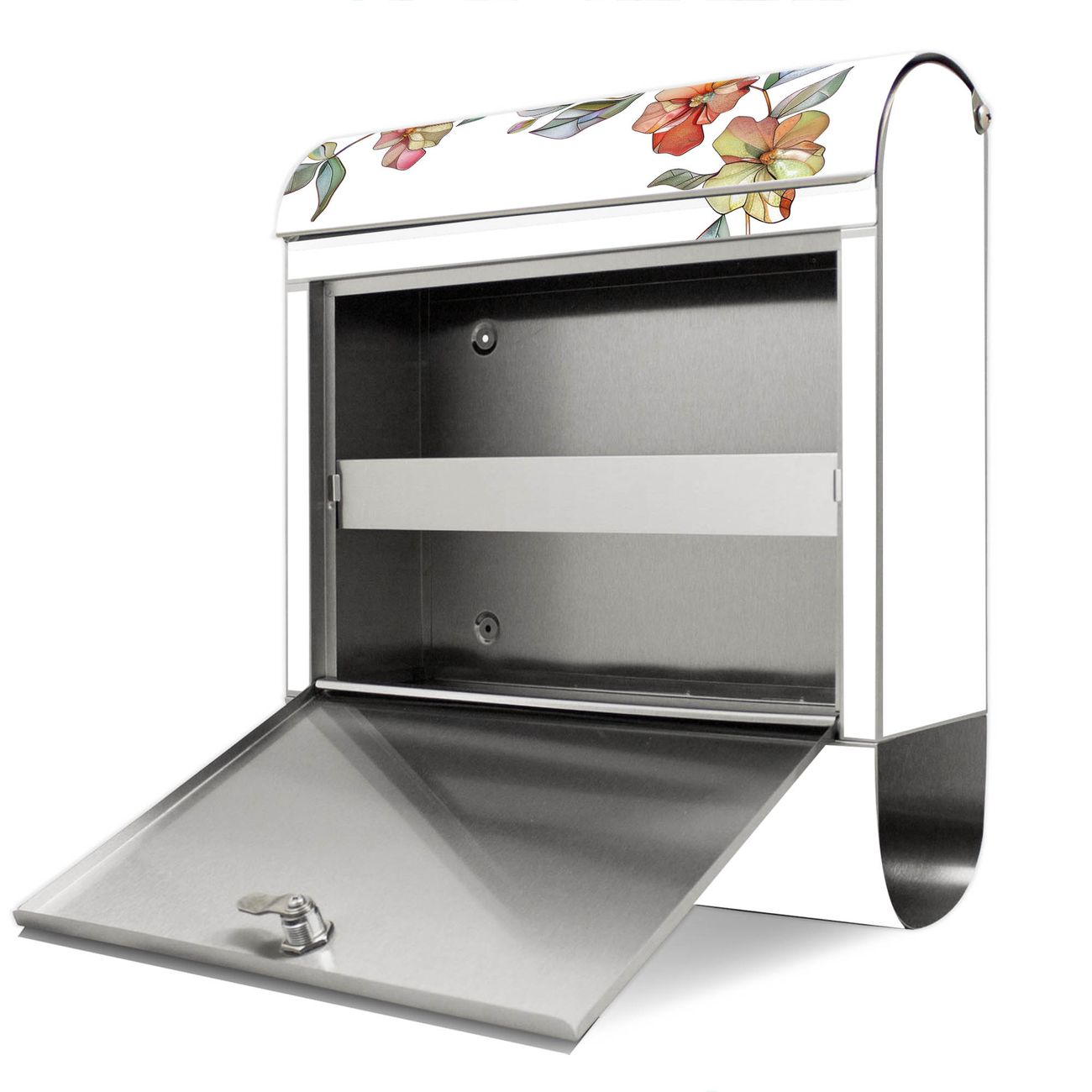 Wandbriefkasten Edelstahl Motiv Floraler Rahmen