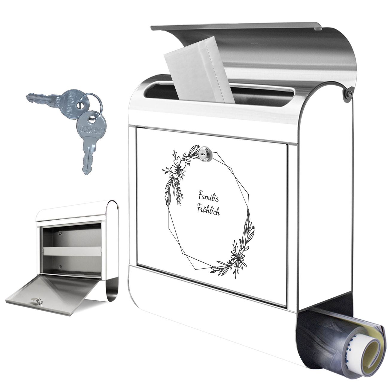 Wandbriefkasten Edelstahl Motiv Floraler Rahmen