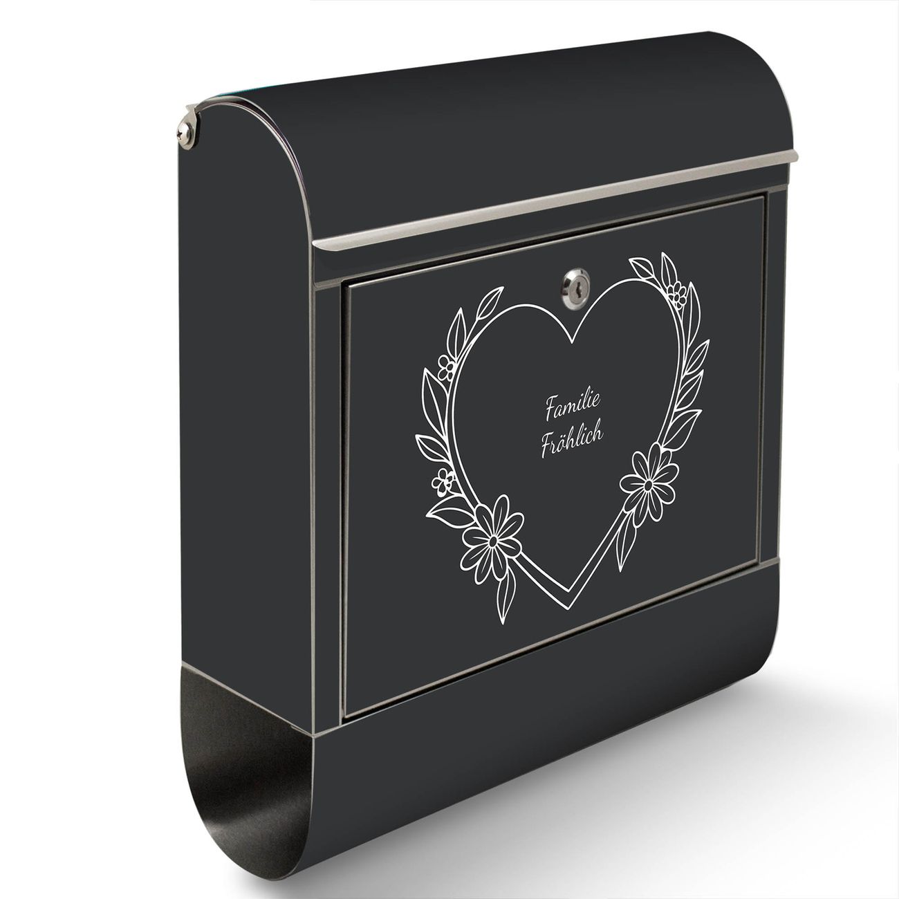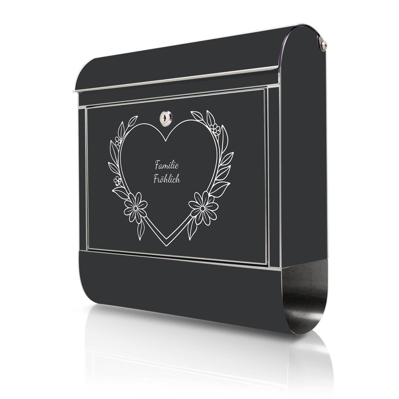 Wandbriefkasten Edelstahl Motiv Florales Herzdesign