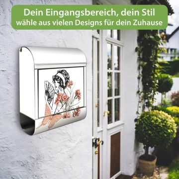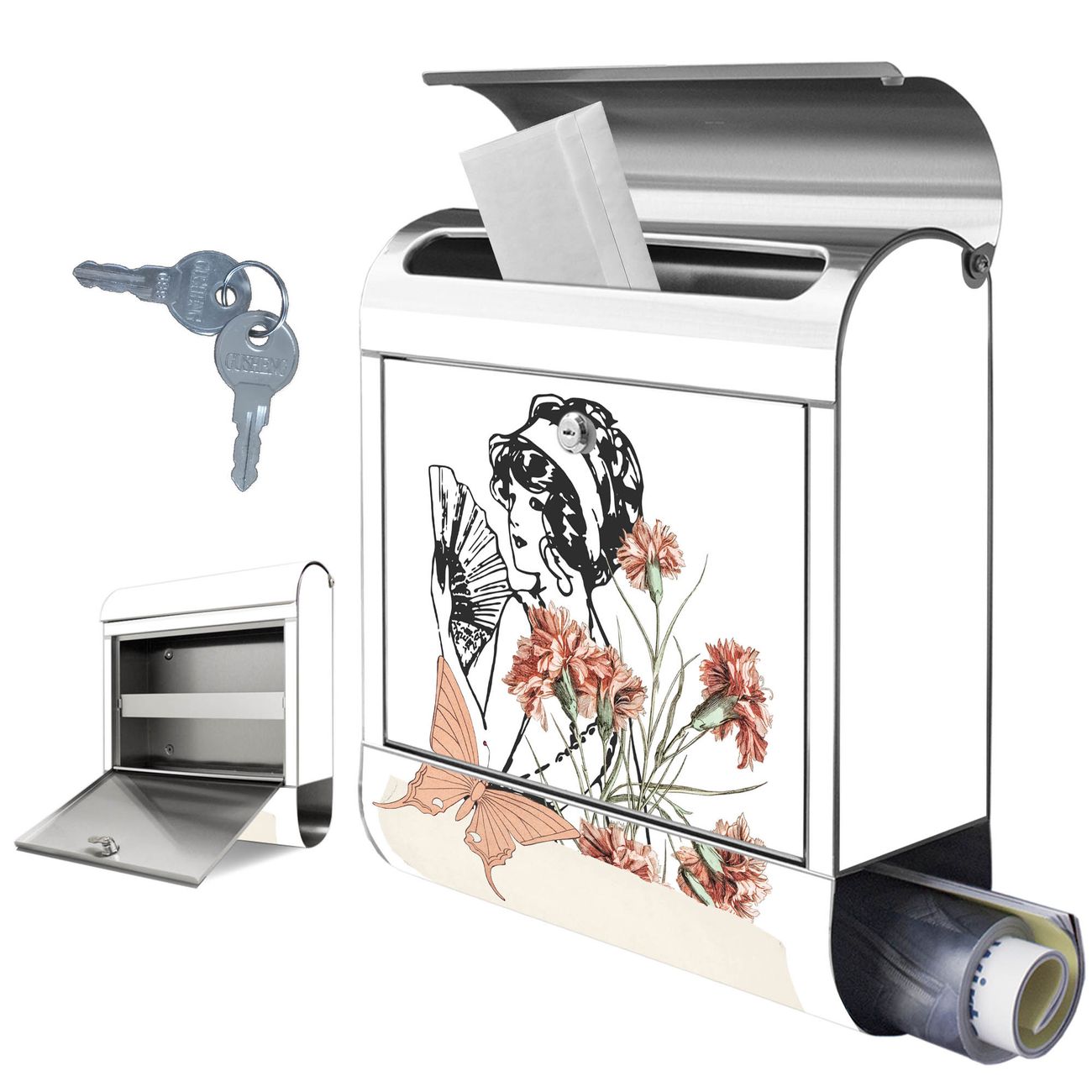 Wandbriefkasten Edelstahl Motiv Frau und Blühten Vintage 2