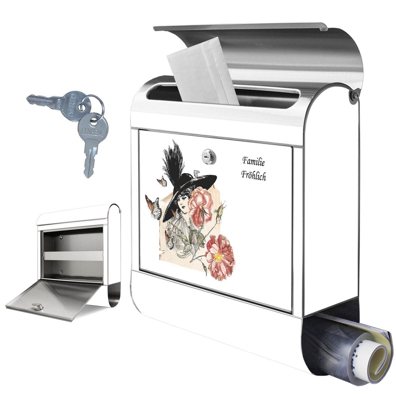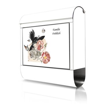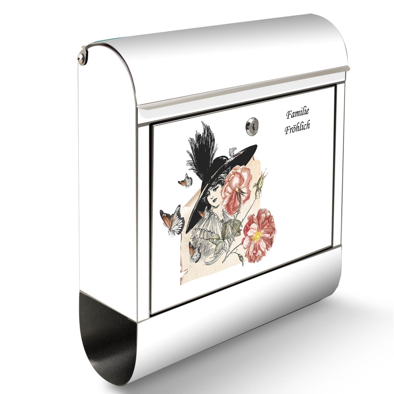 Wandbriefkasten Edelstahl Motiv Frau und Blühten Vintage